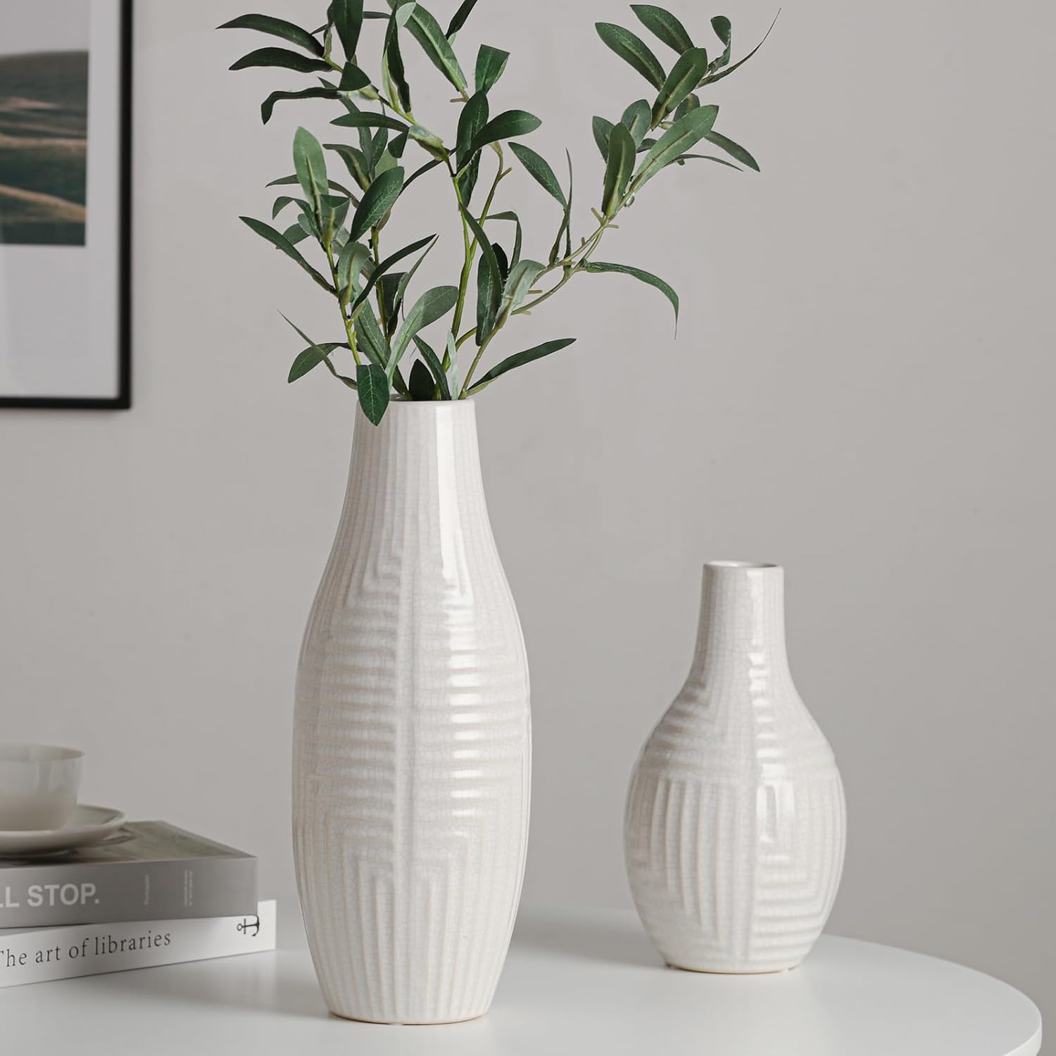 hjn hjn White Vase -Ceramic Vase for Home Decor, Modern Decor Vases for Living Room/Bookshelf/Mantel/Home Decor Accents -13.8" H