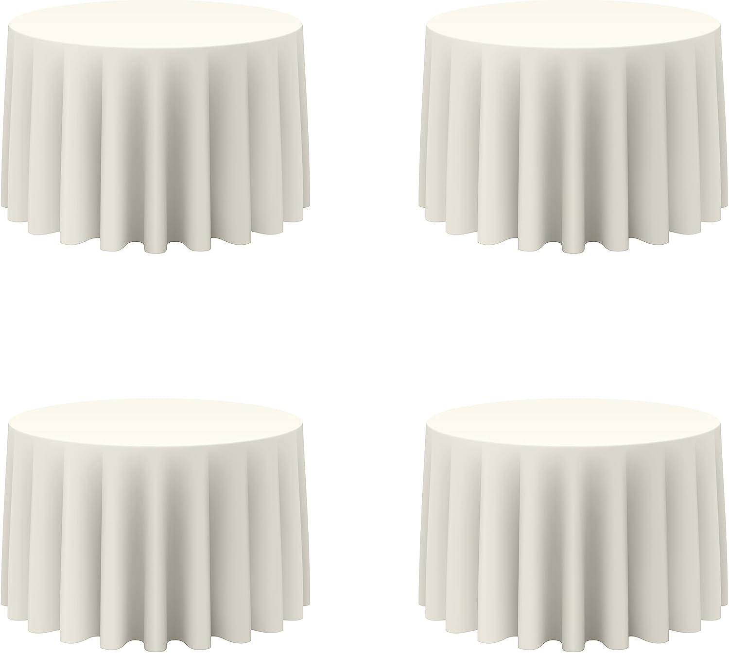 BRILLMAX 4 Pack Ivory Round Tablecloths 108 Inch - Circle Bulk Linen Polyester Fabric Washable Table Cloth Cover for Wedding Reception Banquet Birthday Party Buffet Restaurant