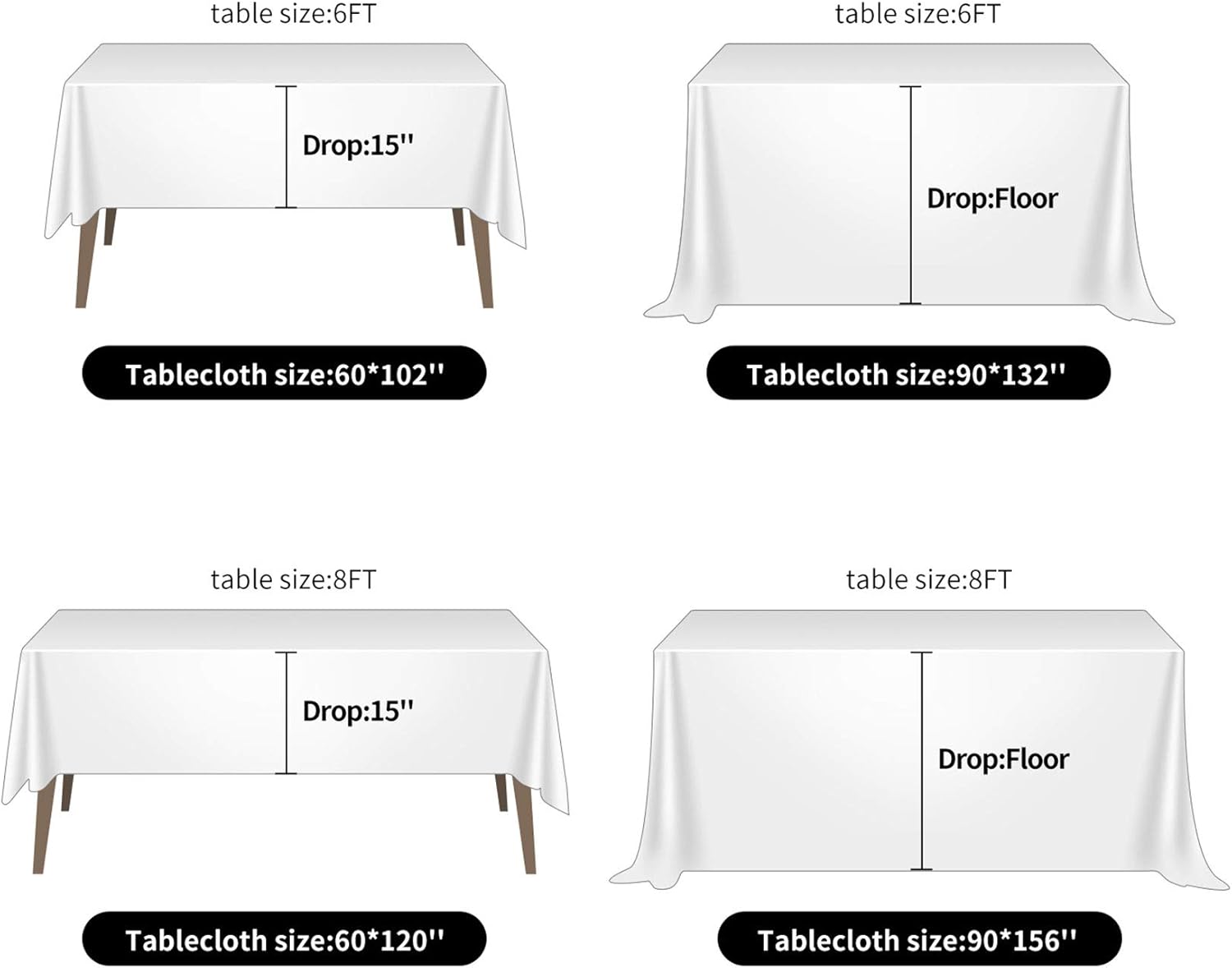- 2 PACK SET, MORE ECONOMICAL: Each pack include 2 pcs of rectangular tablecloth, measuring 60”x102” each. Durable for repeat use, cheaper than renting.