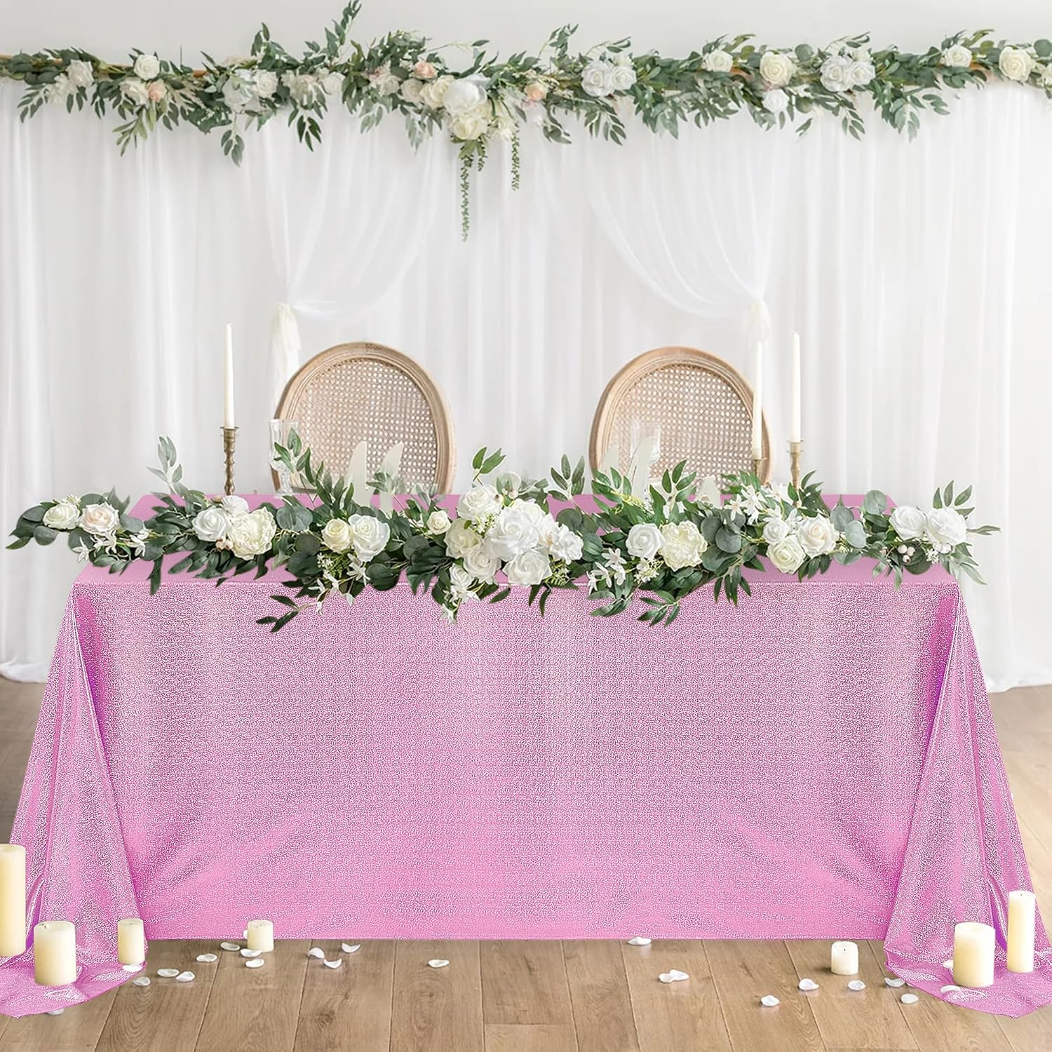 Fitable 2 Pack Pink Sequin Tablecloth for Parties 60x120 Inch - Sparkle Glitter Table Cloth Laser Rectangle Overlay for Wedding Baby Shower Ceremony Birthday Holiday Banquet