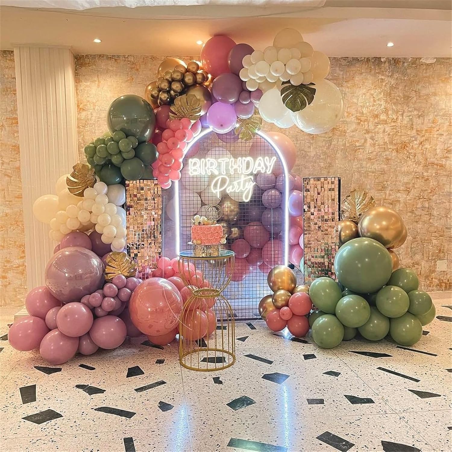- 🎉 Enjoy Party Time - Our dusty sage green pink latex balloons are suitable for many indoor events and outdoor occasions and can add atmosphere to your party. It is the perfect decoration for happy occasions or celebratory moments such as women girls jungle birthday, baby shower, carnival party, wedding, bridal shower, and other party decoration supplies. Makes your party attractive and romantic.
