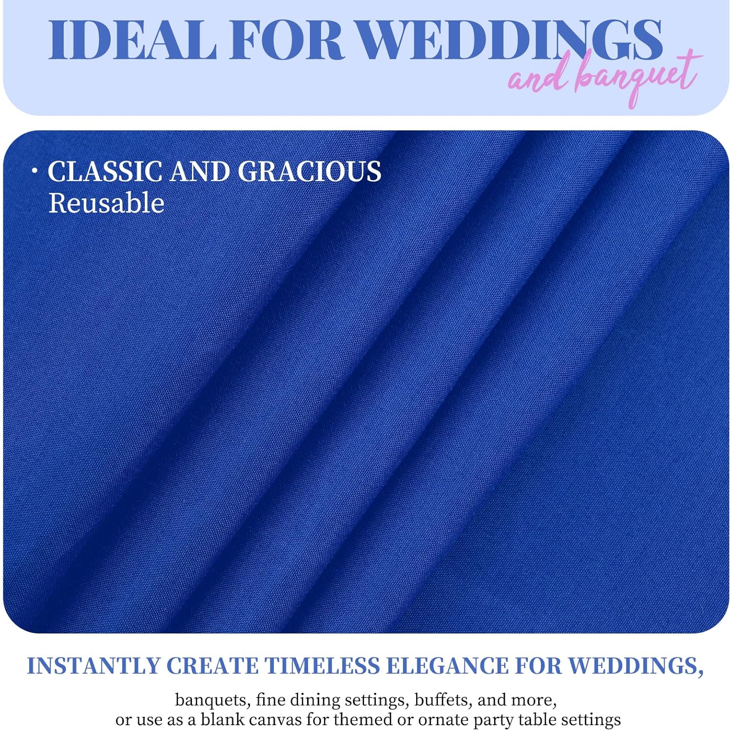 - 【Size】This Royal Blue table cloth is 90 x 132 Inch, for standard 8ft table, providing 18 inch drop. Royal Blue table cover is more luxurious, classic and gracious, for both formal & casual settings and makes a great for all occasions.