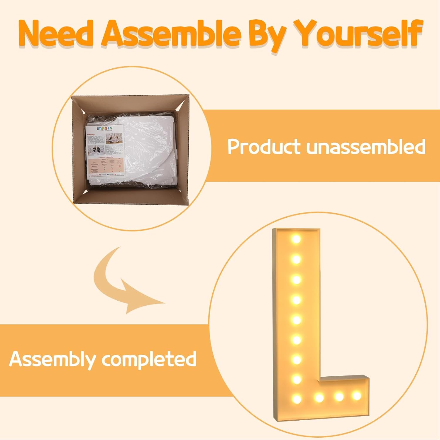 - Assembly Required: Our large marquee letters is made from foam board and easy to assemble with our splicing mode. Just follow the numbered instructions to align and insert the bottom plate, and reinforce it with a hot glue gun. Then, you're done!