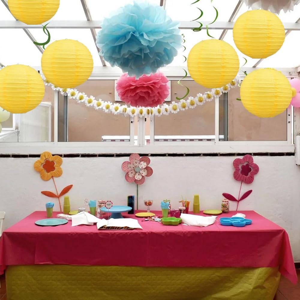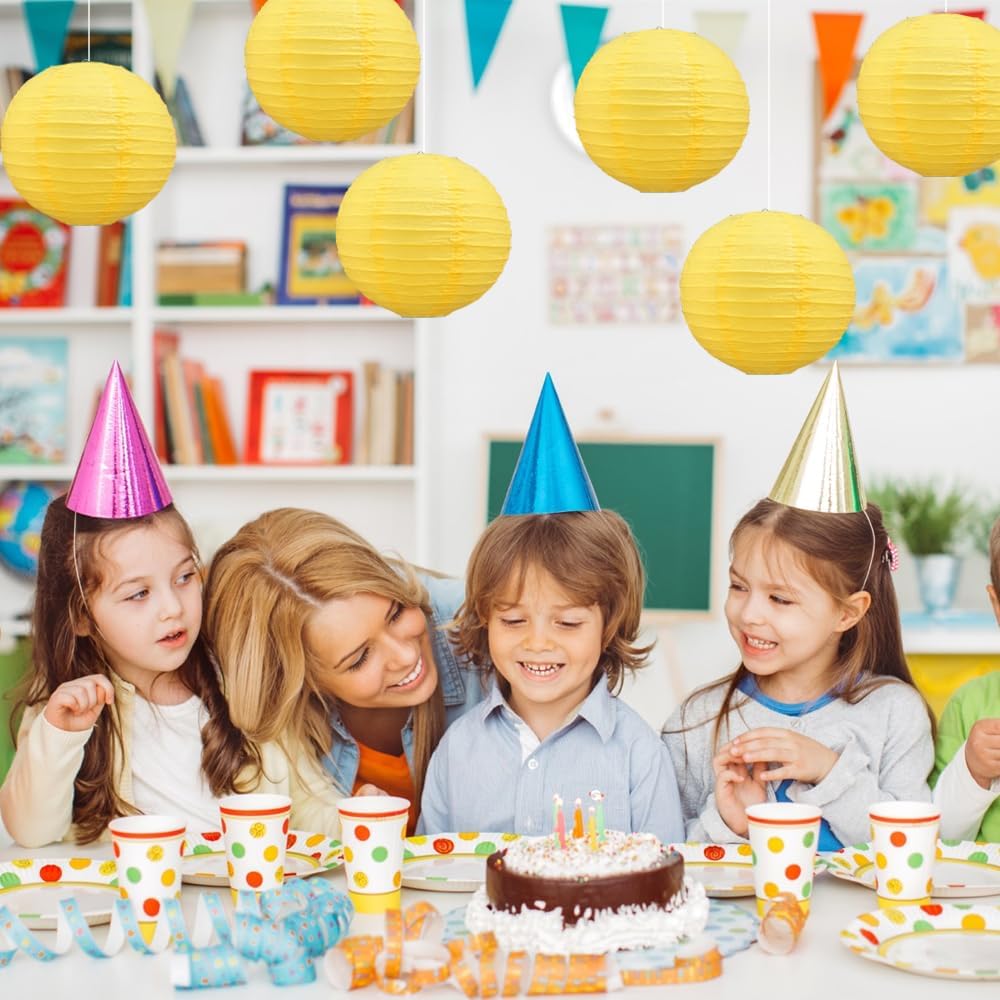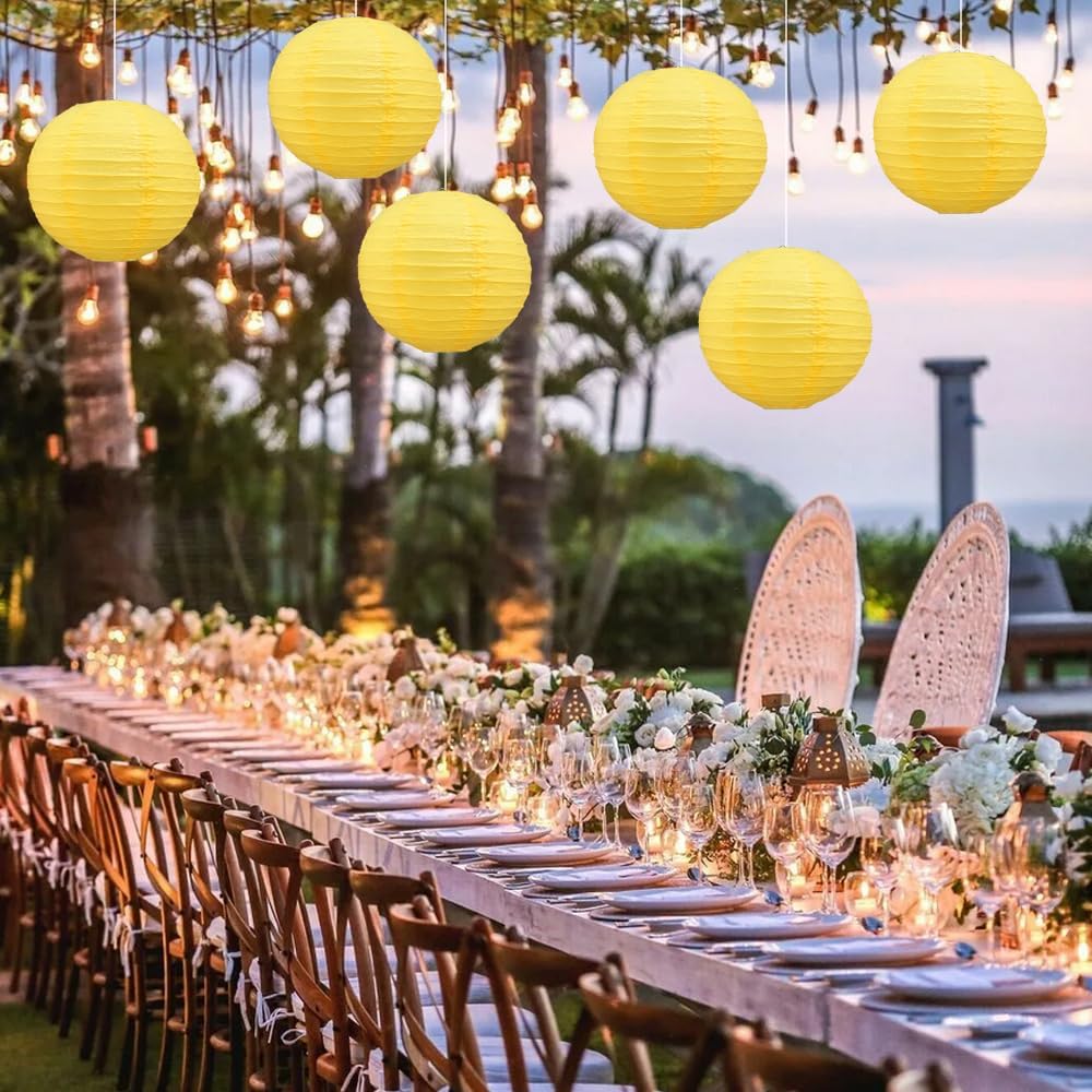 BEISHIDA 8-Inch Yellow Round Paper Lanterns Decorative Hanging Asia Chinese Japanese Paper Lanterns Lamp for Birthday Halloween Wedding Baby Bridal Shower Fall Home Decor Party Decoration(6 Packs)