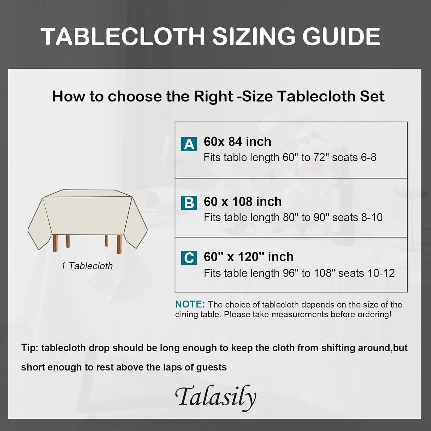 - Multiple Purposes:The linen table cloth perfect for parties, ceremony,cafes,catering,picnic,event,barbecues,buffets,indoor and outdoor use and more.Great choice for Weddings, Birthday Party, Baby Shower, Food Buffet, Banquet, Thanksgiving and Christmas Dinner.