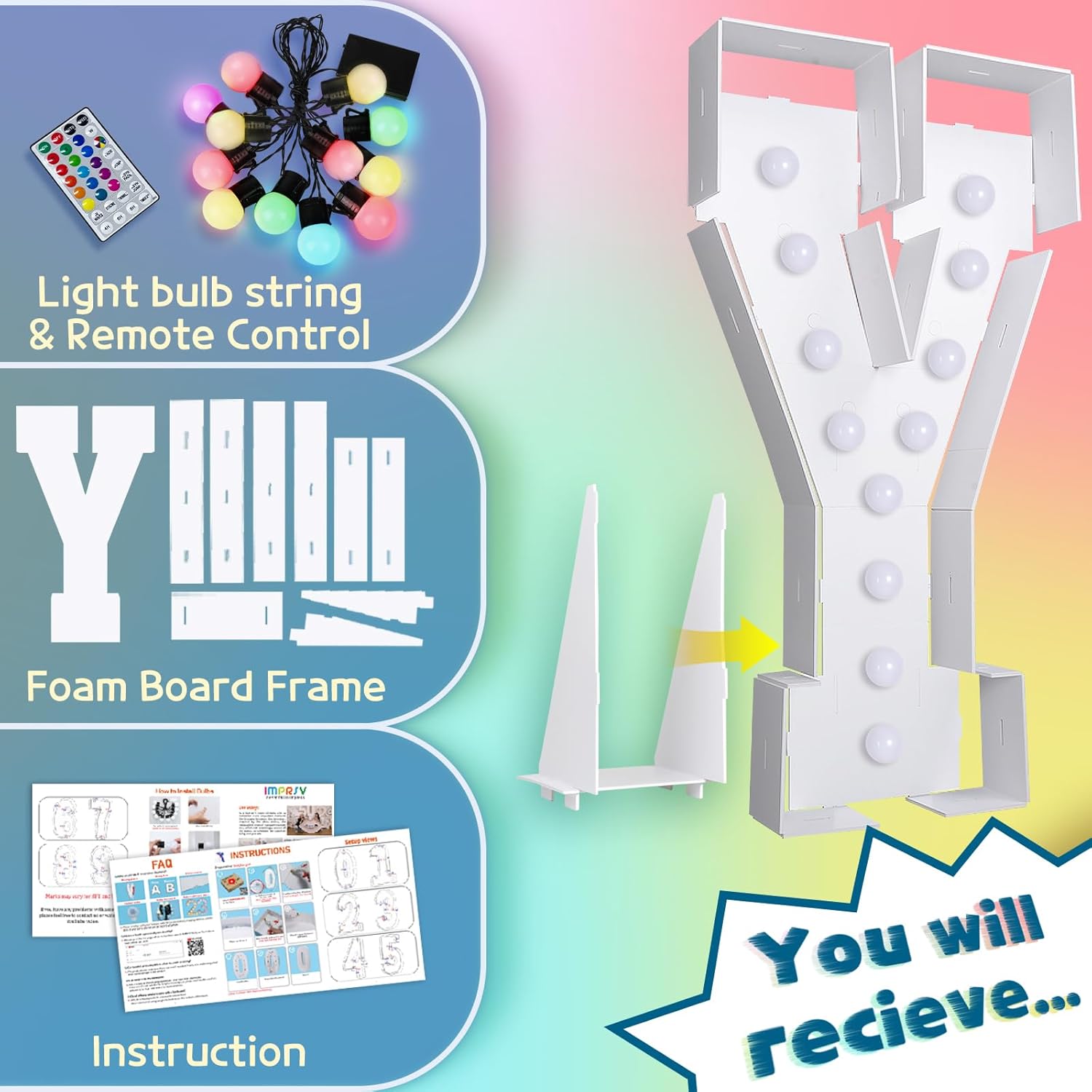 imprsv 4FT Colorful Marquee Light Up Letters Y, 18 Colors Large Light up Letters Alphabet Sign with Remote, Large Marry Me Sign, Birthday Party Decorations Baby Shower Anniversary Wedding Decoration