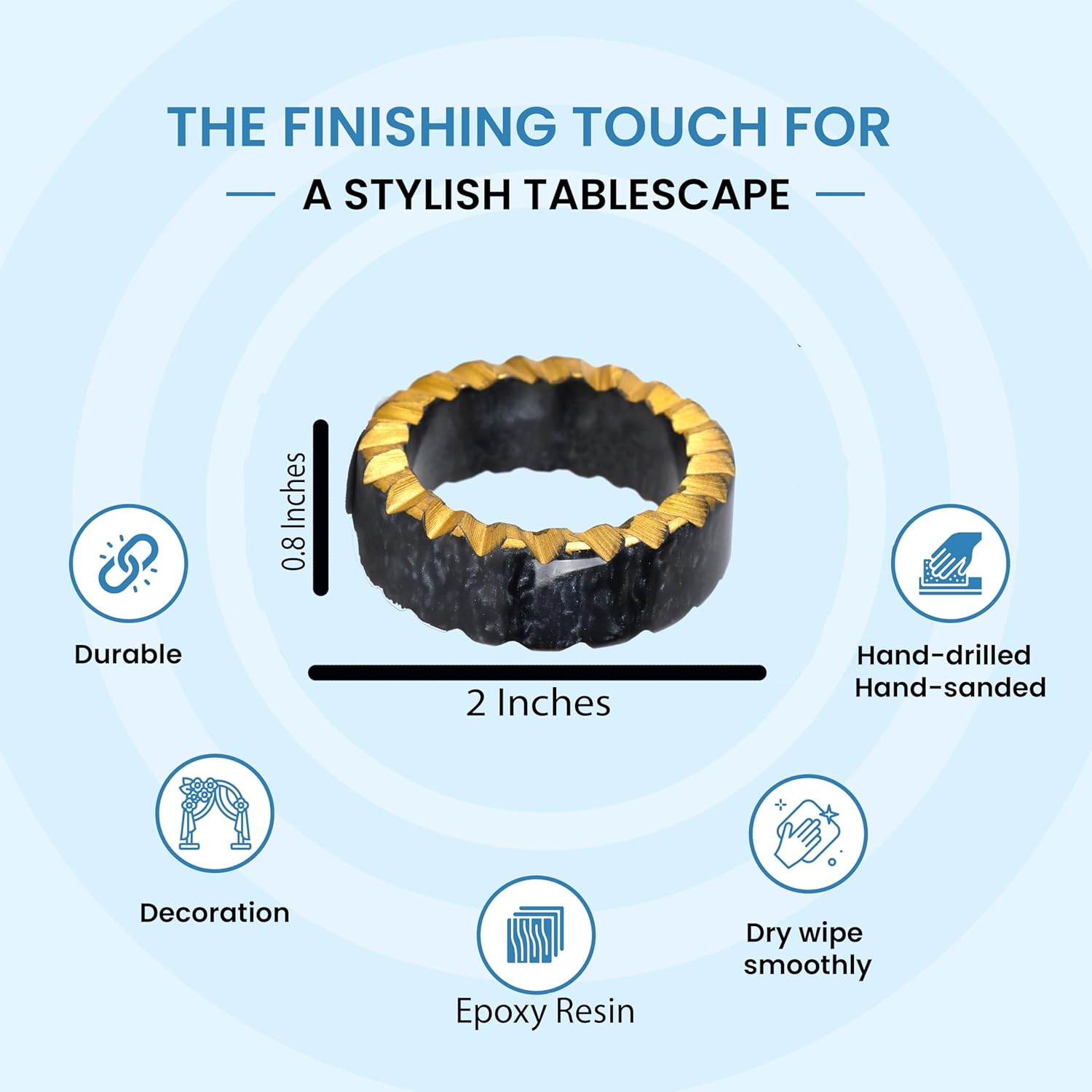 Epoxy Resin Napkin Rings Set of 12 - Rustic Napkin Holders for Dining Tableware, Dinning Table, Everyday, Wedding, Anniversary Festival Thanksgiving Party of Table Setting (Black White) - CLEENTABLE