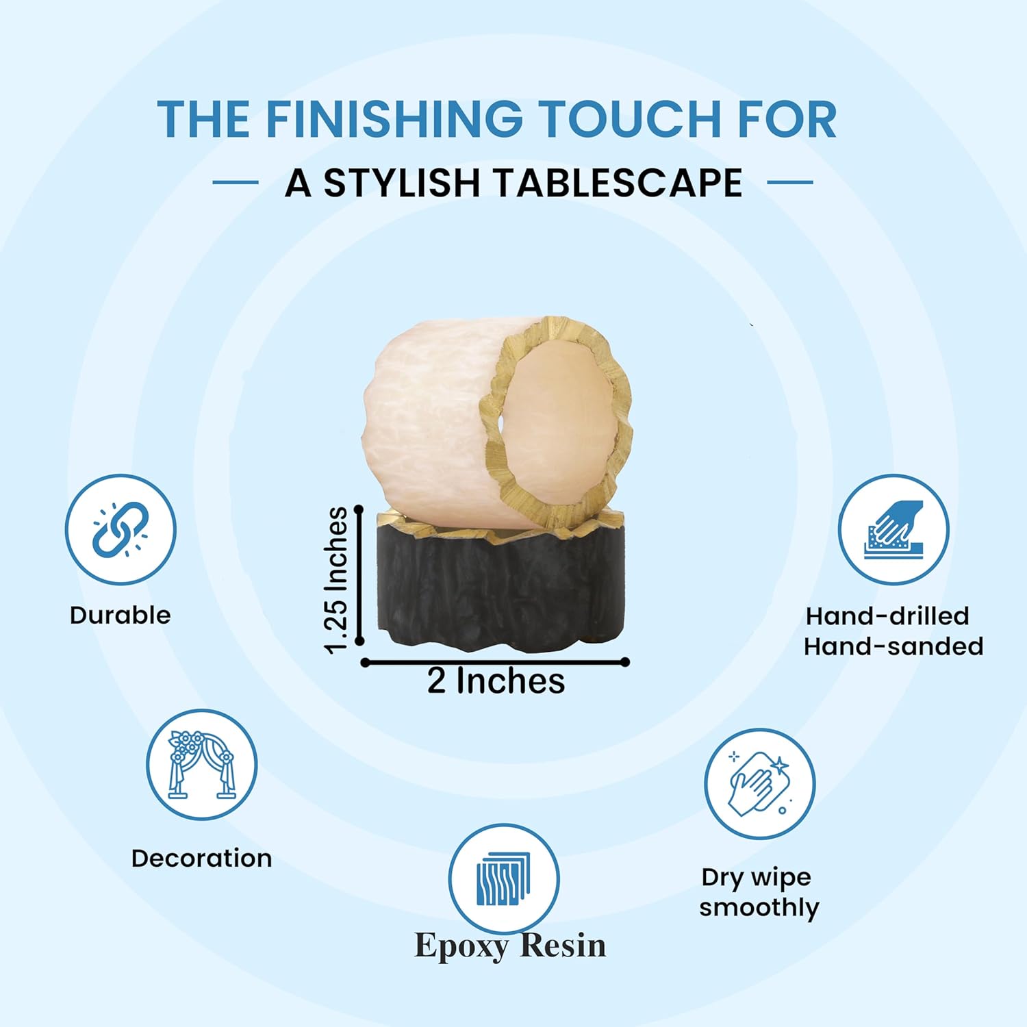 - ✅ Handmade Artisan Variations: Slight differences in color, size, and texture add unique charm to each resin napkin ring piece.