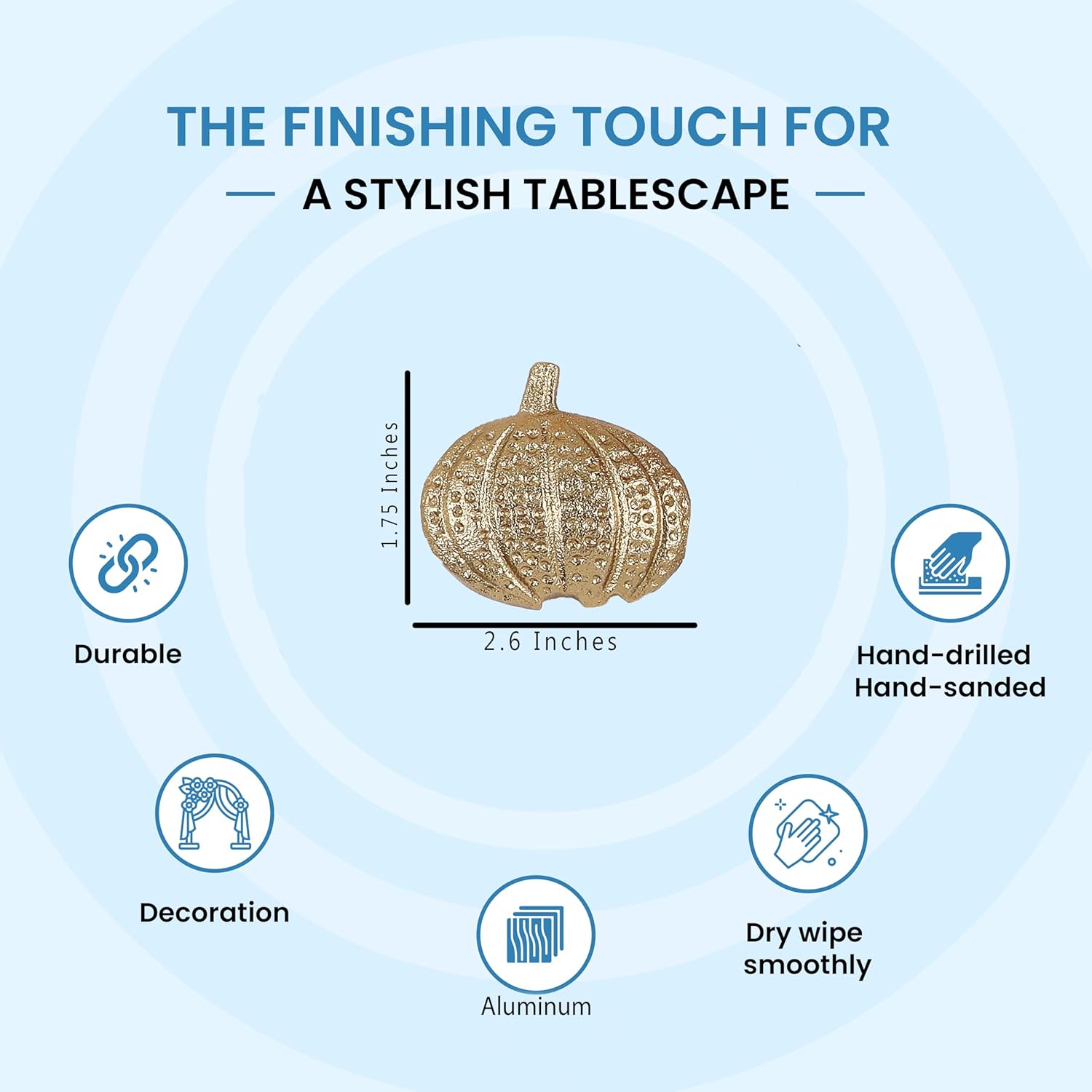 Gold Lightweight Metal Napkin Rings Set of 12 - Pumpkin Elegant Napkin Holders Modern Serviette Buckles Metallic Adornment for Table Settingsfor Thanksgiving, Fall, Halloween & Holiday - CLEENTABLE
