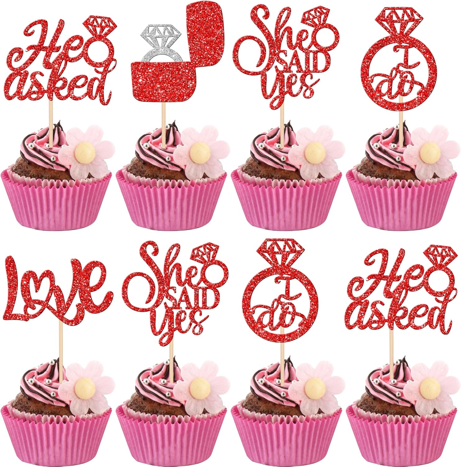 - Wide Usages ! These cupcake toppers are perfect for wedding engagement theme party, bridal shower theme party, he asked she said yes theme party cupcake decorations , they can make your cupcake more attractive and bring the fun to your party.You can also apply them for ice cream, fruits, cookies and other desserts.