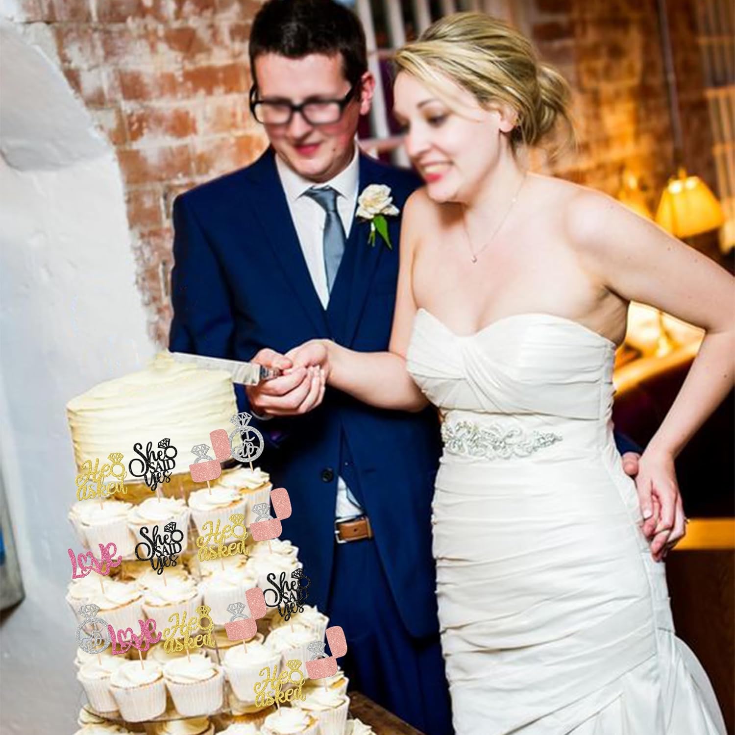 - Wide Usages ! These cupcake toppers are perfect for wedding engagement theme party, bridal shower theme party, he asked she said yes theme party cupcake decorations , they can make your cupcake more attractive and bring the fun to your party.You can also apply them for ice cream, fruits, cookies and other desserts.