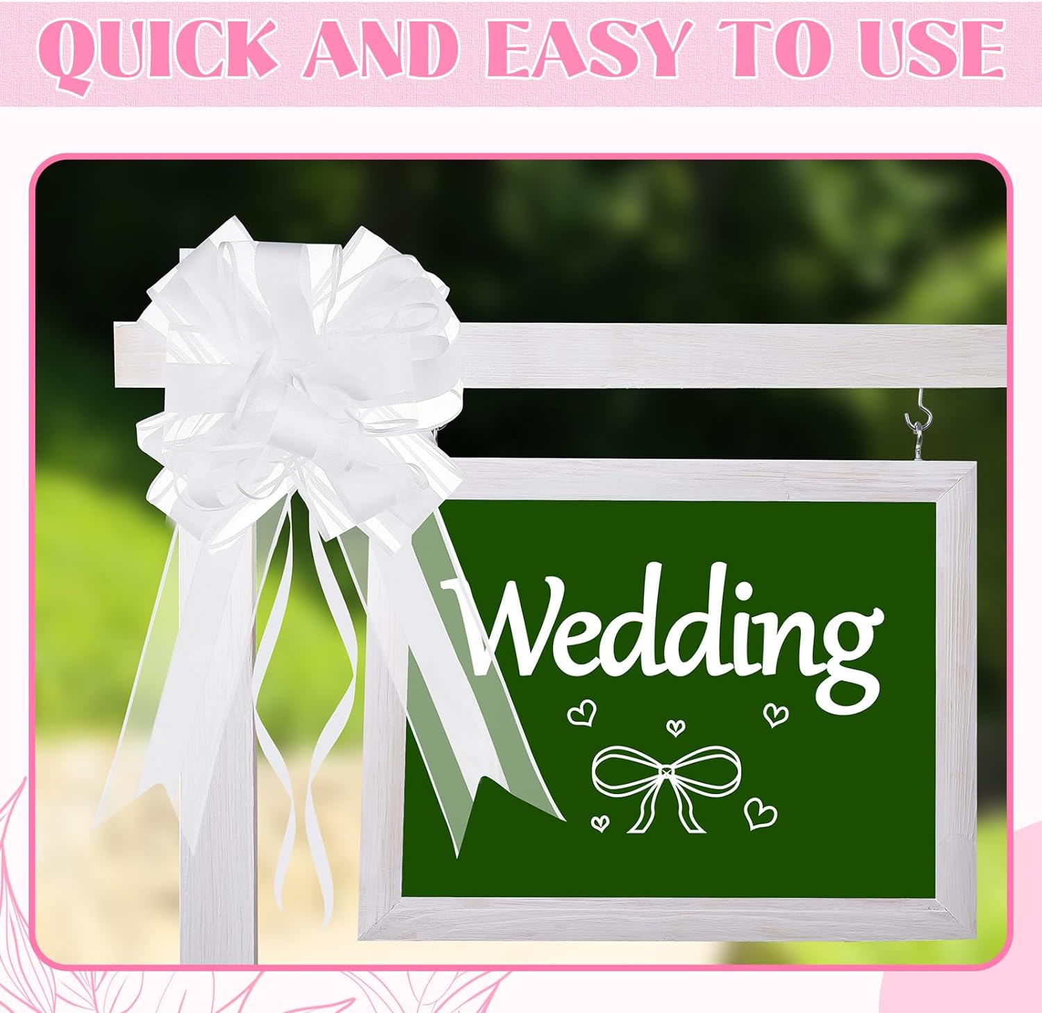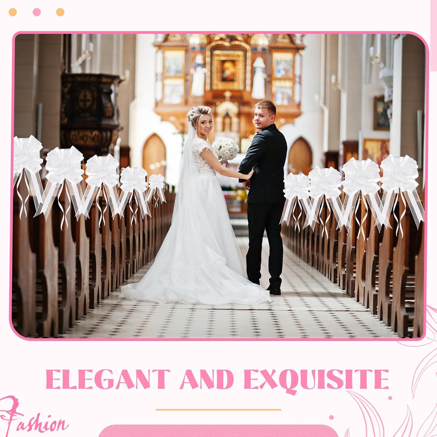 - Reusable Design: by keeping the 2 thin ribbons intact, you can reapply the white wedding pull bows for your next project or event, ensuring nice decoration; You can tie the ribbon into a loop to hang, or add flowers, leaves, pearls and more to decorate benches, church, chairs, gates and more; The flowers, leaves, pearls are not included