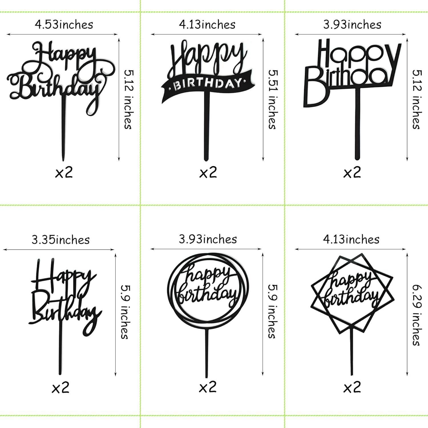 - Size: The Happy birthday cake toppers’ height is approx.5.1 - 6.3 inches, the width is approx. 3.4 - 4.5 inches. Ideal for 6-10” cakes.