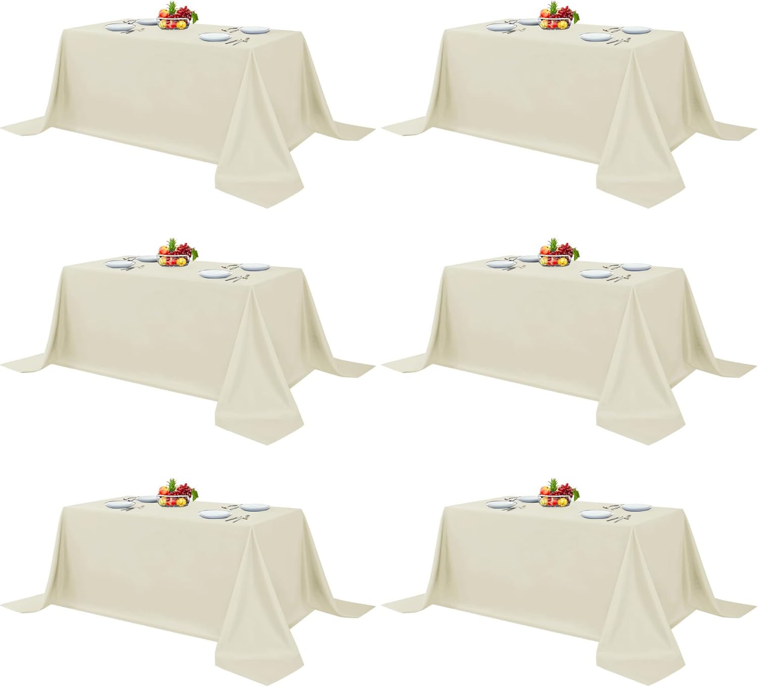 Fitable Elegant Rectangle Table Clothes, 6 Pack - 90 x 132 Inch, Ivory - Reusable and Washable Tablecloths, Polyester Fabric Table Covers for Wedding, Party, Banquet, Formal Events