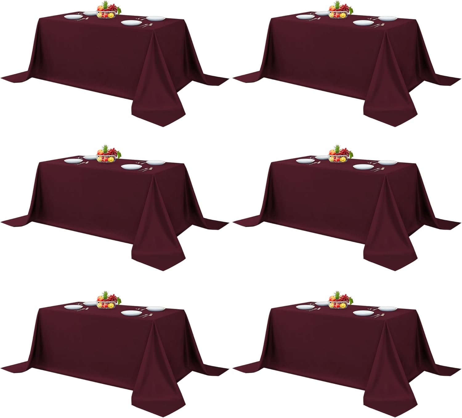 Fitable Elegant Rectangle Table Clothes, 6 Pack - 90 x 132 Inch, Burgundy - Reusable and Washable Tablecloths, Polyester Fabric Table Covers for Wedding, Party, Banquet, Formal Events