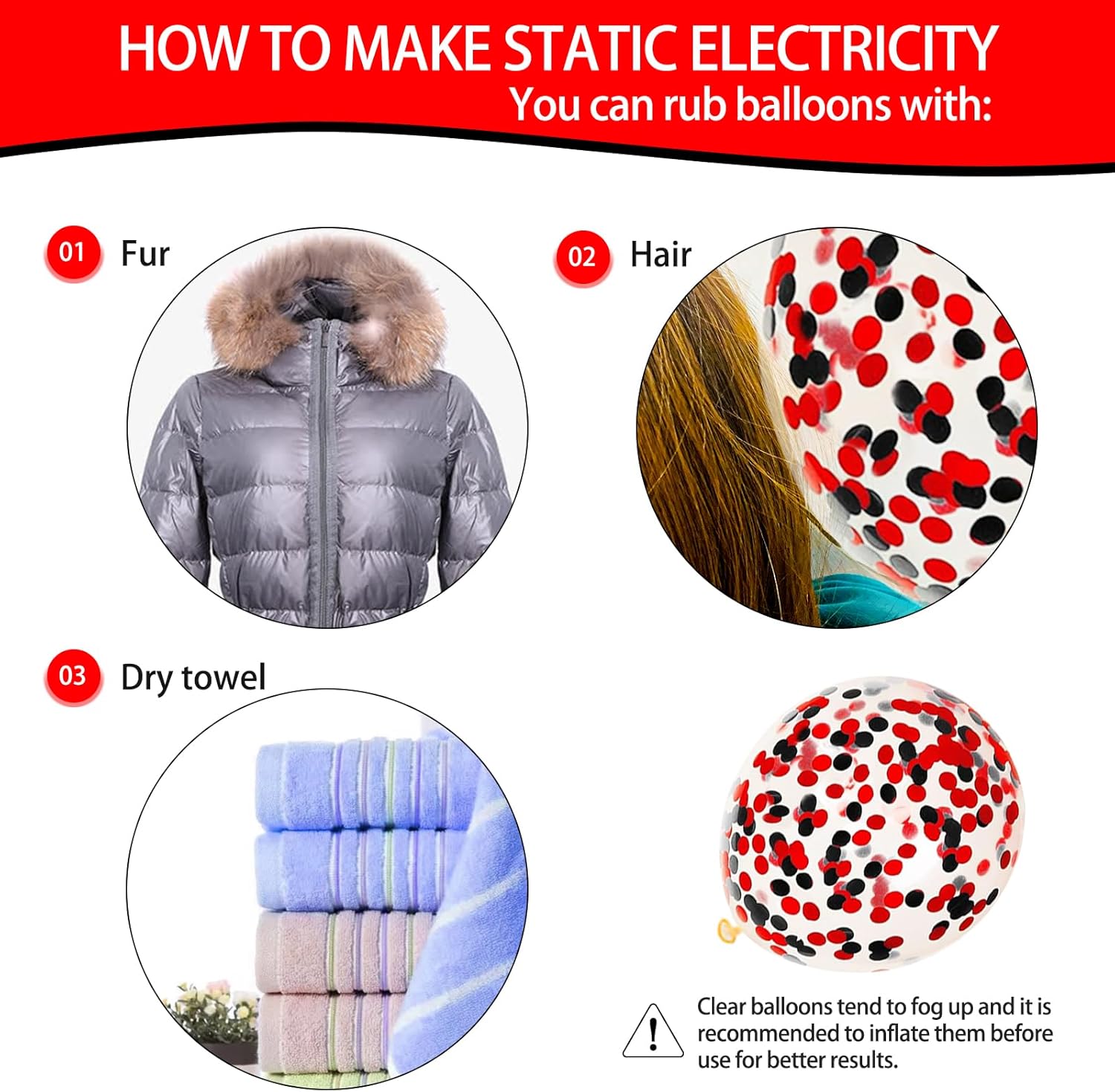 - 【Easy To Use】Black red white latex balloons and confetti balloons can be filled with air, helium and even water. Please do not over inflate the balloons to avoid bursting. If you have any questions about our balloon set, please contact us at once .