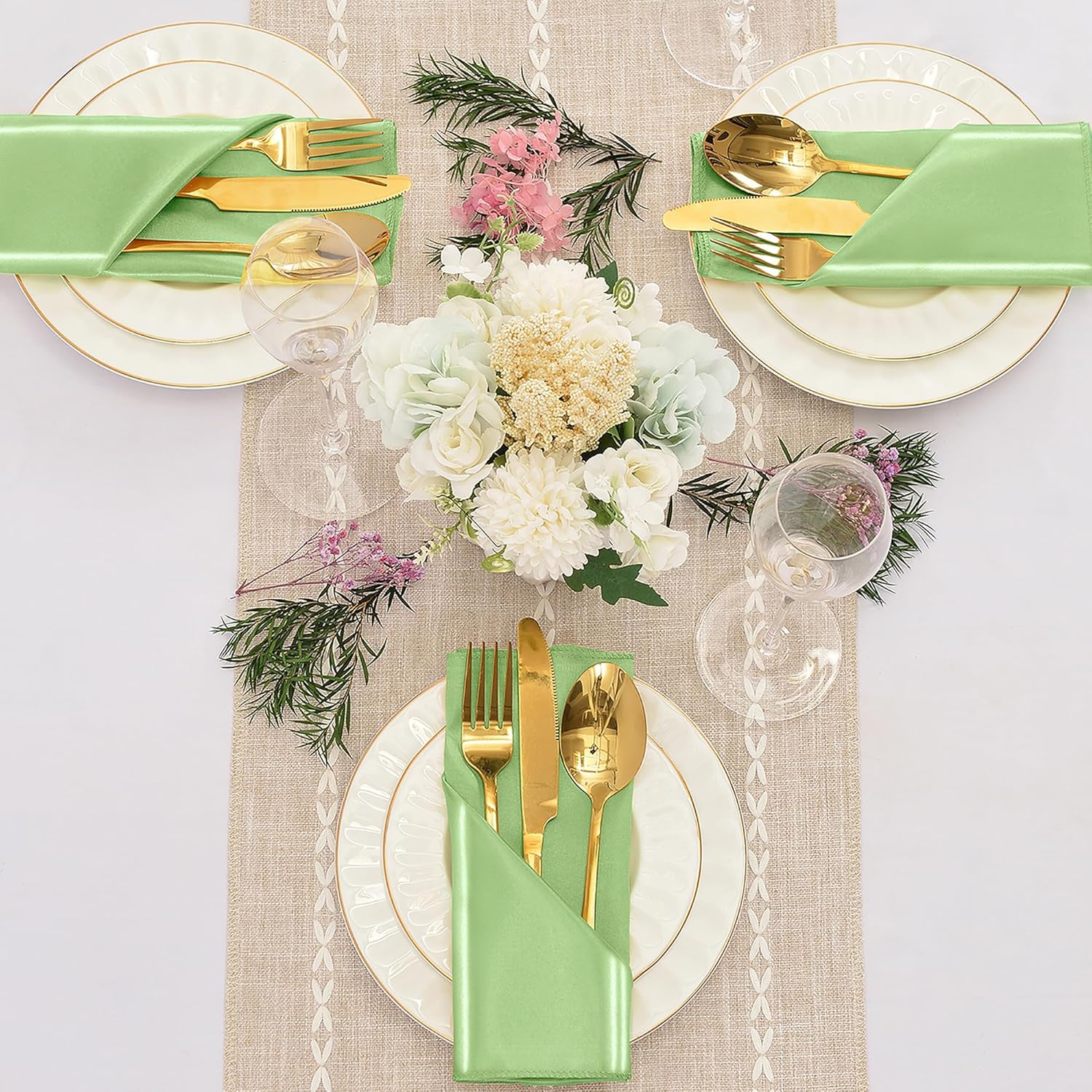 50 Pieces Sage Green Satin Napkins, 17" x 17" Square Table Napkins, Silky Soft Smooth Washable Napkins for Restaurant, Weddings, Dinner, Party Decoration