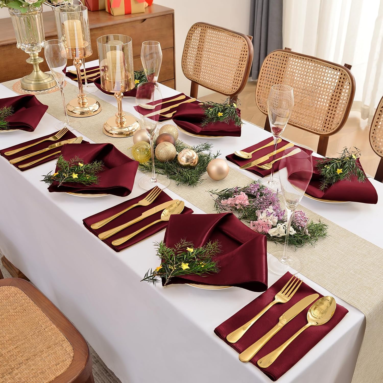 - ❤Classy and Elegant Dining Experience: Elevate your dining table with our satin napkins, adding a touch of class to any occasion. These elegant dinner napkins are designed to uplift your dining experience and create a sophisticated atmosphere for your guests. With a pack of 12 napkins, you can accommodate a large number of guests at once.