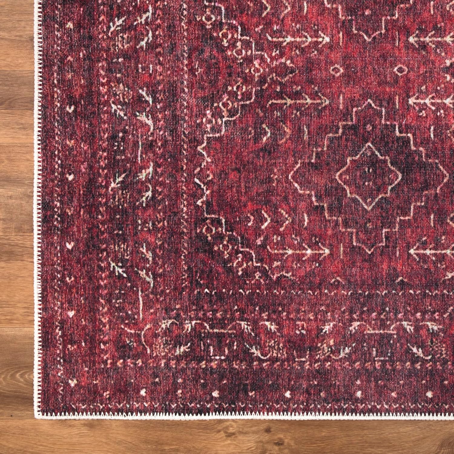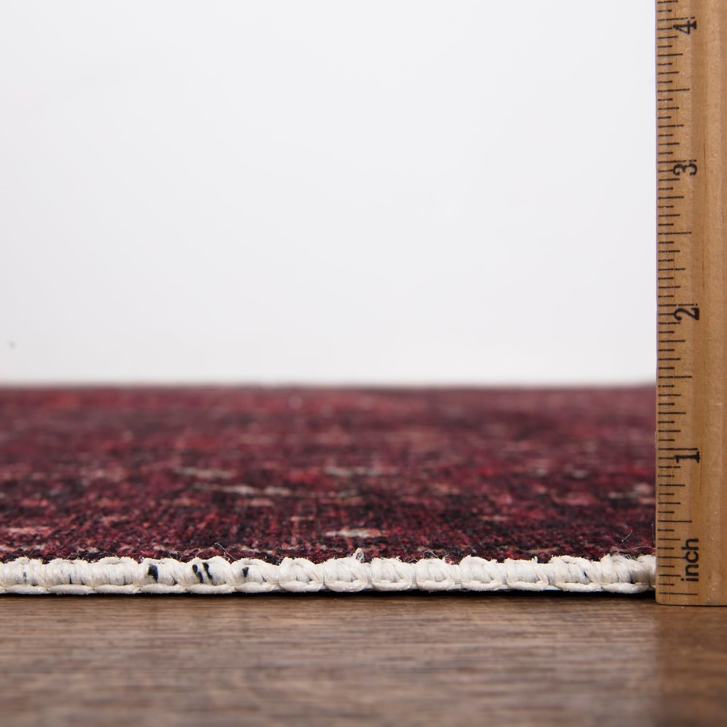 Bloom Rugs Washable Non-Slip 10 ft Runner - Dark Red Traditional Bordered Runner for Entryway, Hallway, Bathroom, and Kitchen - Exact Size: 2.5' x 10'