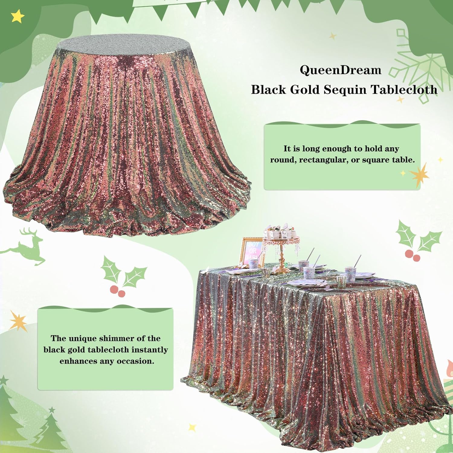 QueenDream Sparkly Sequin Tablecloth - Black GoldTable Cloth 50x80 Inches Rectangle Table Overlay Fabric for Birthday Parties Baby Shower Decoration