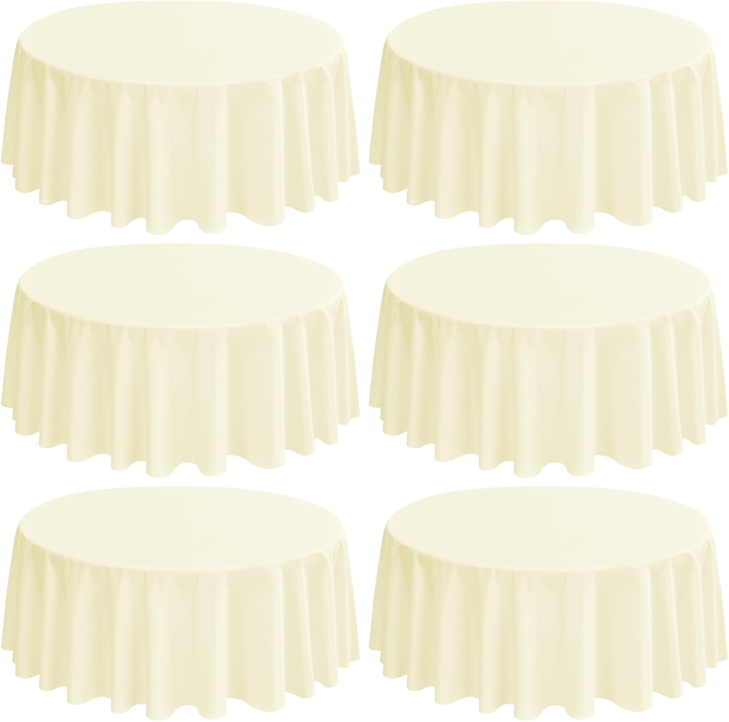 6 Pack Round Tablecloths - 120 Inch, Beige Polyester Table Cover, Stain & Wrinkle Resistant, Washable Table Cloth for Banquet & Parties
