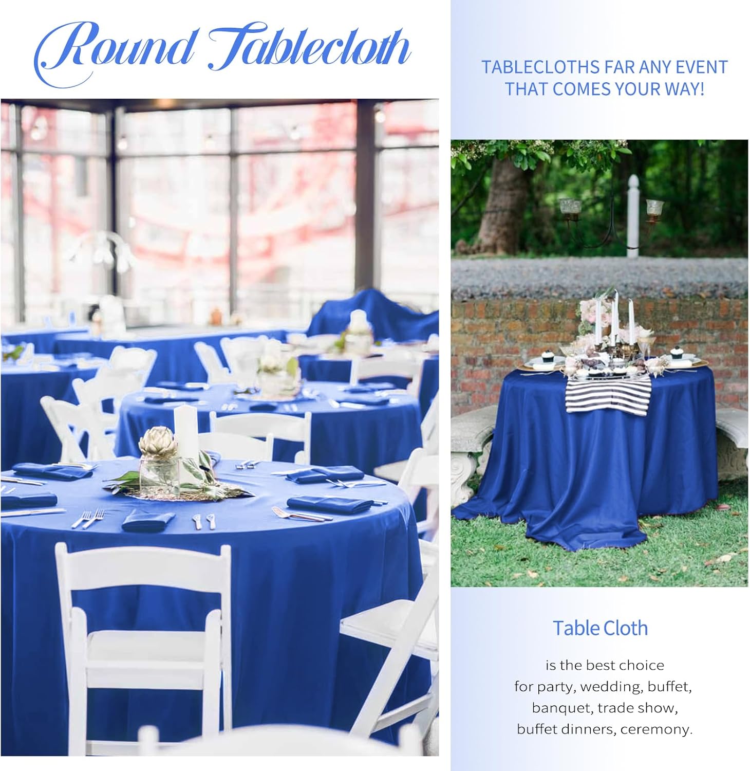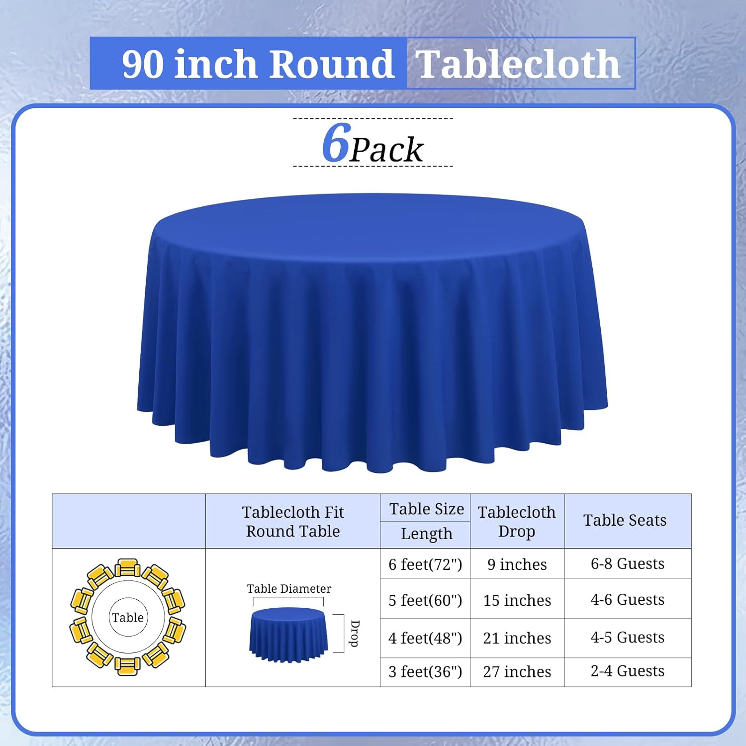 - 【Superior Tablecloth Material】: You will get 6 pack royal blue round tablecloth, this durable and easy to clean tablecloth is made from180 GSM 100% premium polyester fabric that resists wrinkling for an always crisp, polished look. Providing more convenience for your using and cleaning. Durable for repeat use.