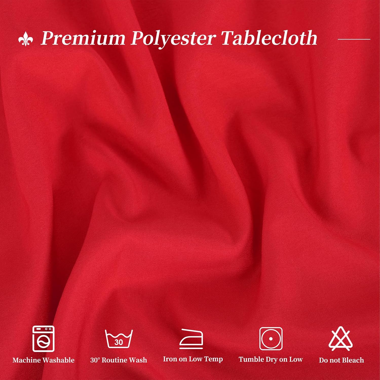 - 【Exquisite Workmanship】This tablecloth is a 1-piece seamless premium table cloth. Every part of the tablecloths is flat and smooth. The red round table cover are designed with folded borders and fine stitching to ensure an elegant look and no loose threads. Our color-fast dyes stay vibrant and true, and will not fade or transfer during washing or use. The party round polyester tablecloth makes your dining table neat, elegant and stylish.