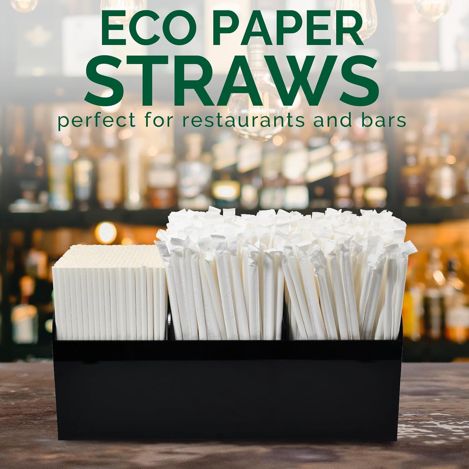 7.75 Inch Disposable Paper Drinking Straws Bulk Individually Wrapped, 0.24" Dia. (Plain White, 400 ct.) - Biodegradable and Compostable