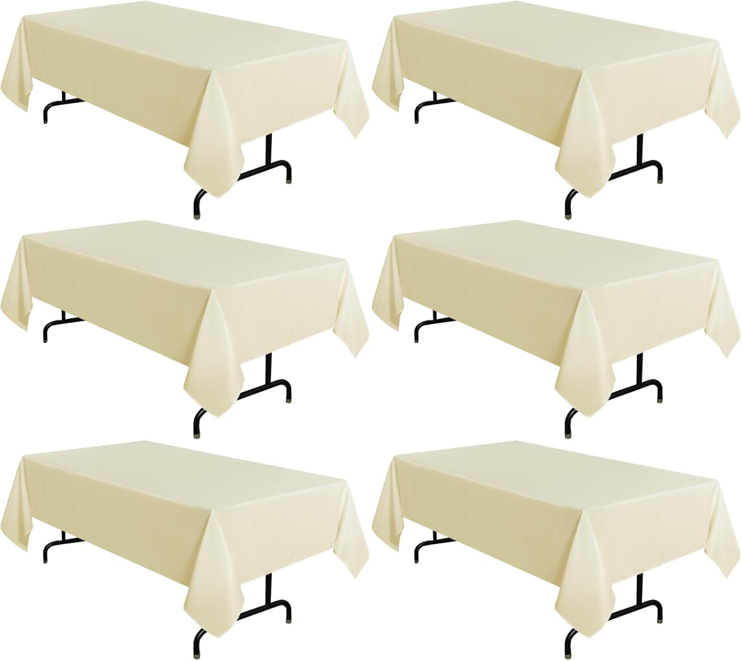 sancua 6 Pack Beige Tablecloth 60 x 102 Inch, Rectangle Table Cloth for 6 Feet Tables - Stain and Wrinkle Resistant Washable Polyester Table Cover for Dining Tables, Buffet Parties and Camping