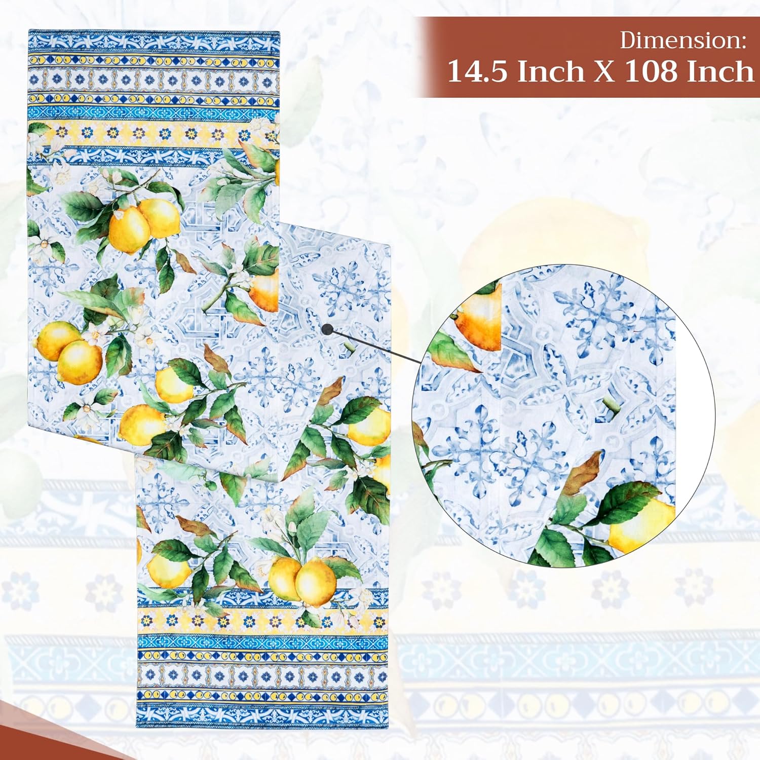 Maison d' Hermine Table Runner 100% Cotton Double Layer Table Runners 108 inches Long Decorative for Home Kitchen Dining Party Baby Shower Wedding Bridal Shower Spring Summer (Citrus, 14.50" x 108")