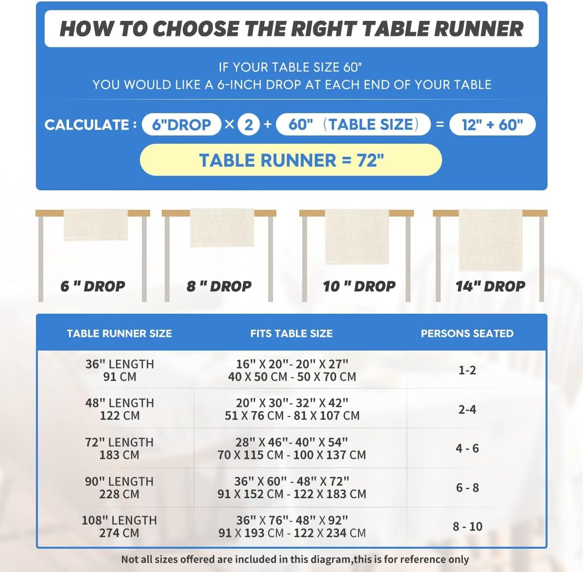 - Fits Table Size : This table runner is 13 x 90 inch, appropriate for a table that can seat 6-8 people, better match your table and give you a delightful dining experience