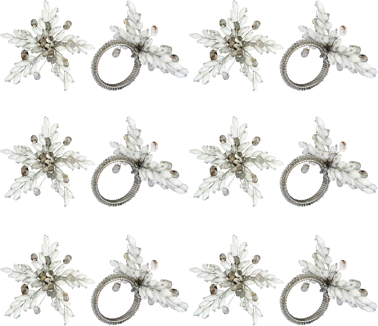 Napkin Rings Set of 12 for Dining Table Decoration Parties Everyday Metal Napkin Holder Leaf White (Pack of 12)