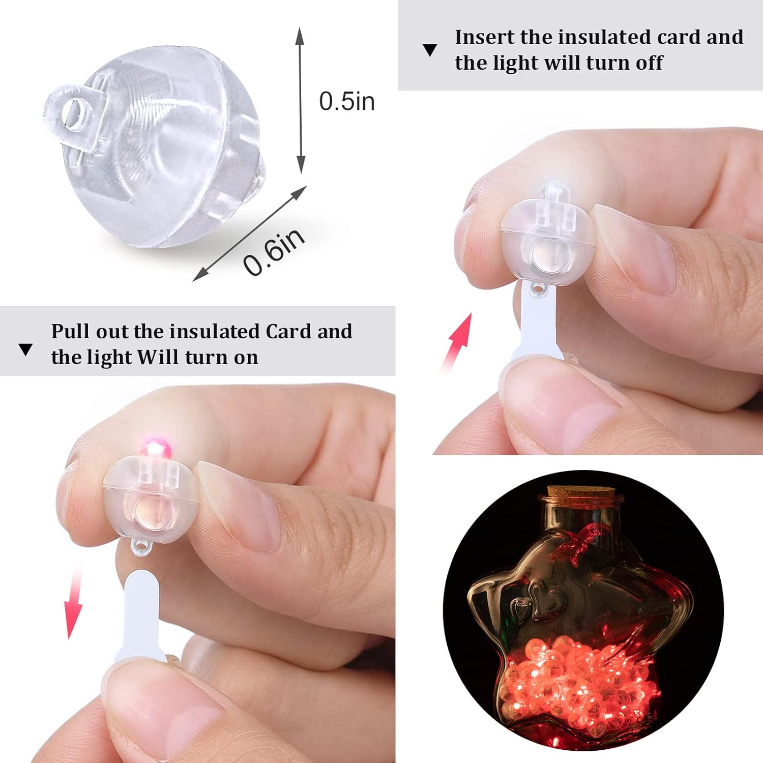 - Easy Operation - These lights are easy to use, just pull out the Insulation film before putting them into the balloons, paper lanterns, vases, bottles or any centerpieces you would like