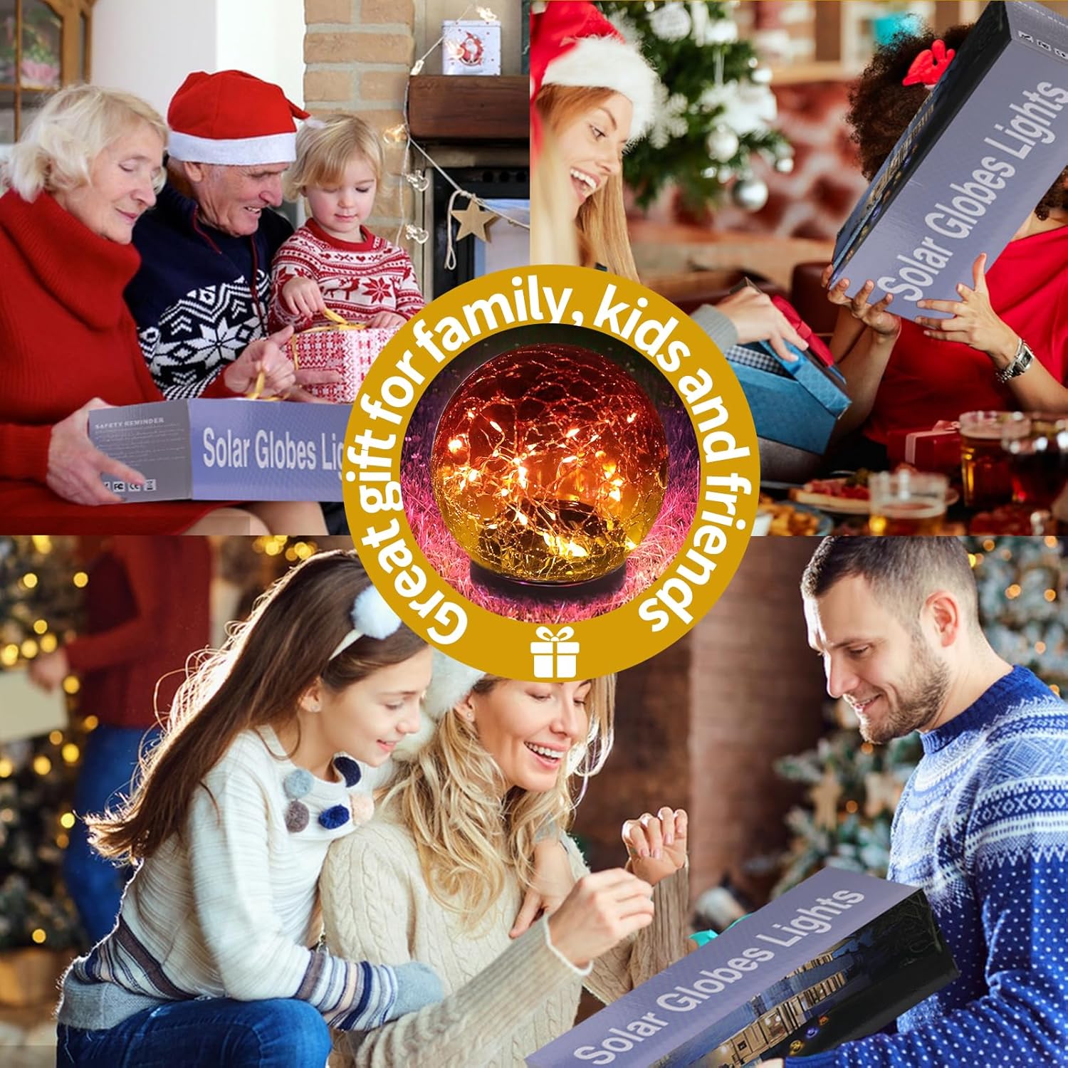 Solar Globe Lights Outdoor Waterproof-Solar Balls for Garden-Cracked Glass Ball Lights Outdoor-Solar Orbs for Outside-Decorations for Patio and Yard Lawn Backyard Decor