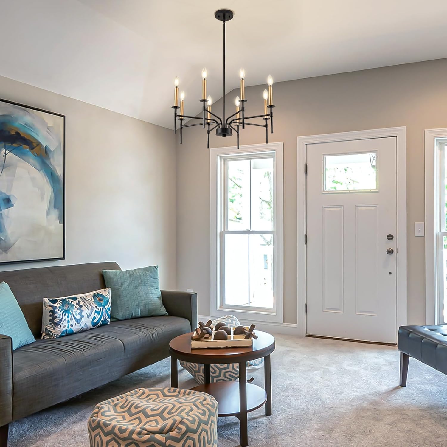 8 Light Modern Farmhouse Black and Gold Chandelier for Dining Room Over Table,Hanging Ceiling Candle Chandeliers Pendant Light Fixture for Living Room Staircase Entryway Foyer Kitchen