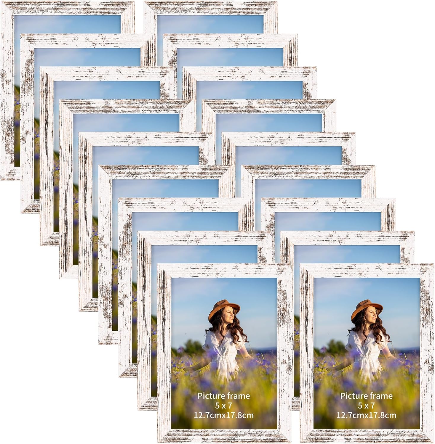 PETAFLOP Wooden Bulk 5x7 Picture Frame Set of 18, White Distressed Photo Frames Fits 5 by 7 for Wall or Tabletop Display