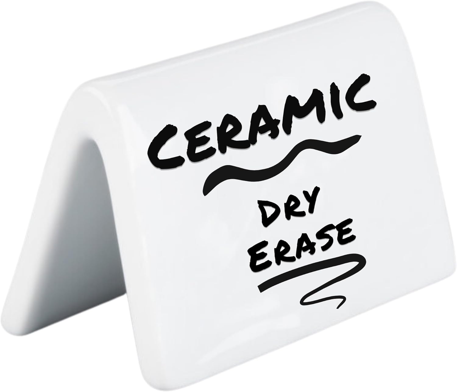 Double Sided Ceramic Dry Erase Table Tent Sign White - 3-1/2"x2" - Reusable Tabletop Setting. Great for Wedding, Birthday, Picnic, Banquet, Buffet, Bakery, Party, Events, Message Board, Food Tents