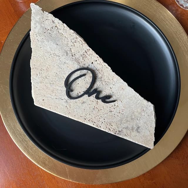 Cursive Wedding Table Number SET, DIY thin modern Black or White acrylic cutouts with silicone glue included. Words only, no backing (One - Twenty, Matte Black)