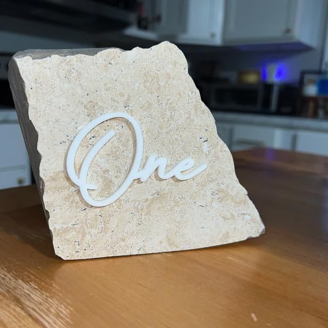 Cursive Wedding Table Number SET, DIY thin modern Black or White acrylic cutouts with silicone glue included. Words only, no backing (One - Ten, Gloss White)