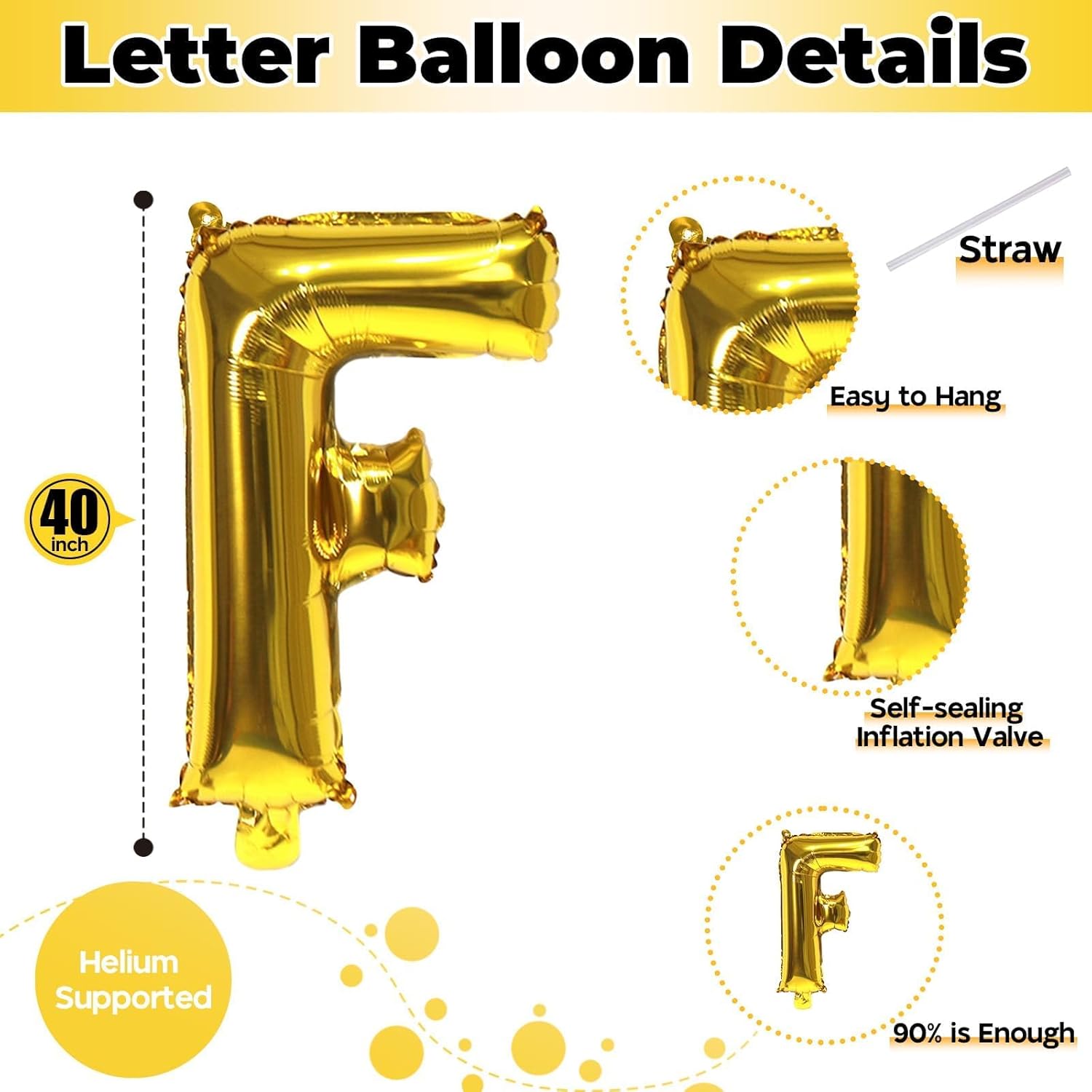 - 🎈 What You Get: Our product package includes 1pcs 40 inch "F" letter foil balloon and 1pcs convenient straw for inflate. You can choose any big letter balloons to combine and customize the word you want to form. Make your party more unique and meaningful.