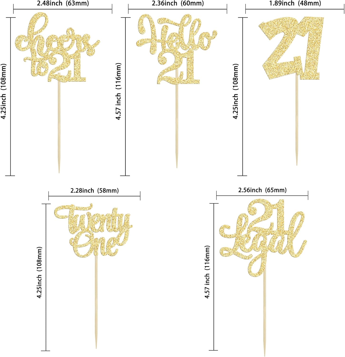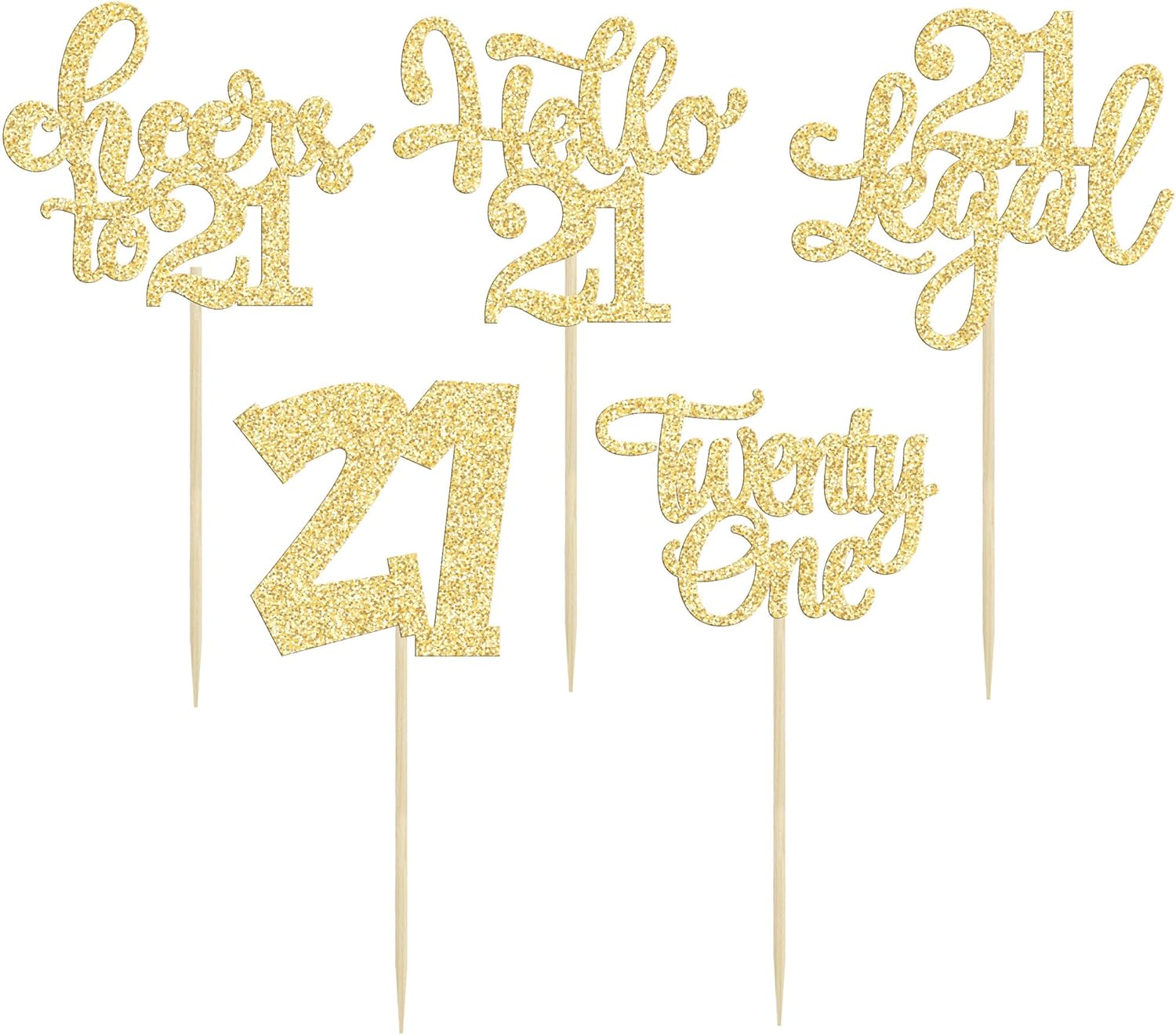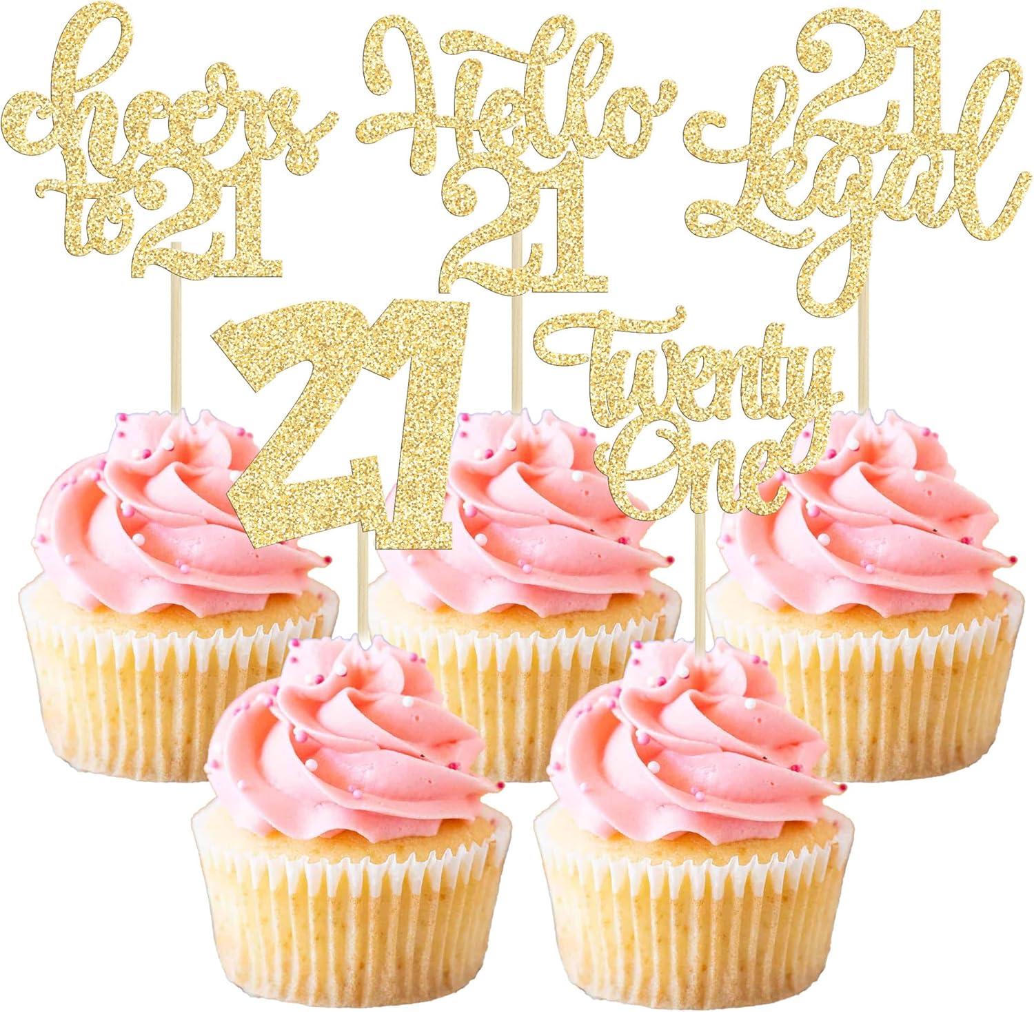 30Pcs 21st Birthday Cupcake Toppers: 21 Legal Cupcake Picks, Cheers to 21 Years Old Cake Decorations for 21st Birthday Anniversary Party Supplies - Gold Glitter