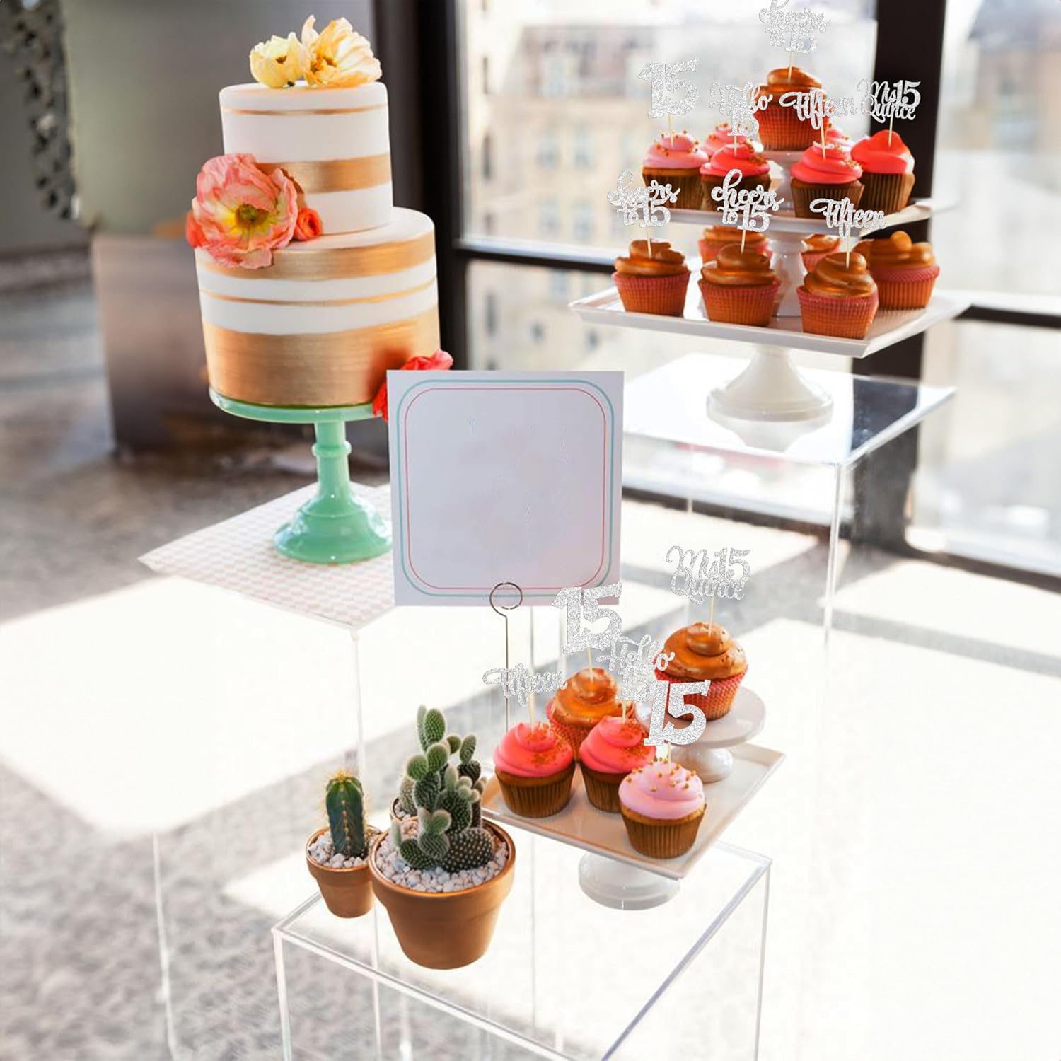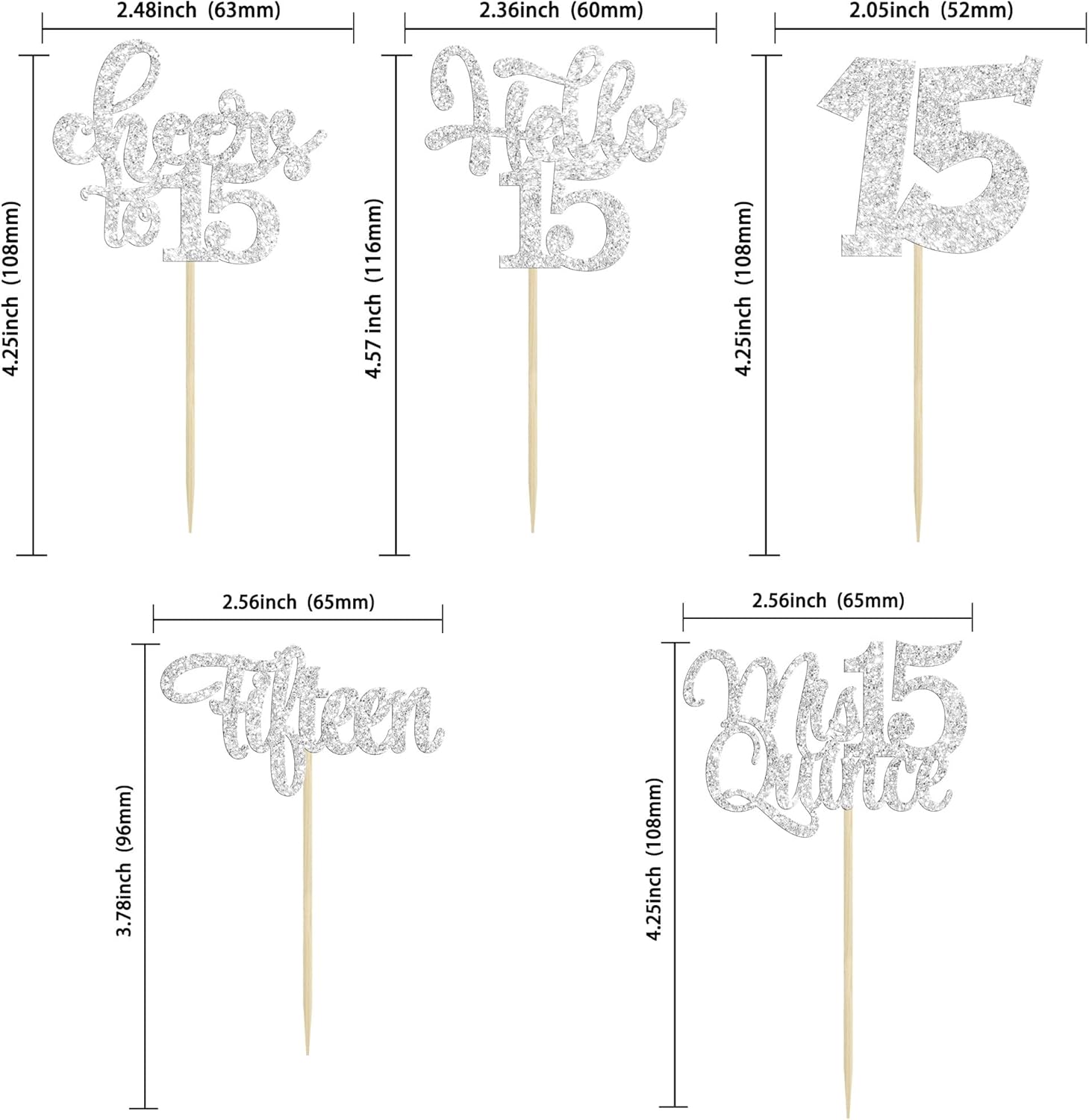 30Pcs 15th Birthday Cupcake Toppers Fifteen Cupcake Picks Cheers to 15 Years Old Mis Quince 15 Cake Decorations for 15th Birthday Anniversary Party Silver Glitter