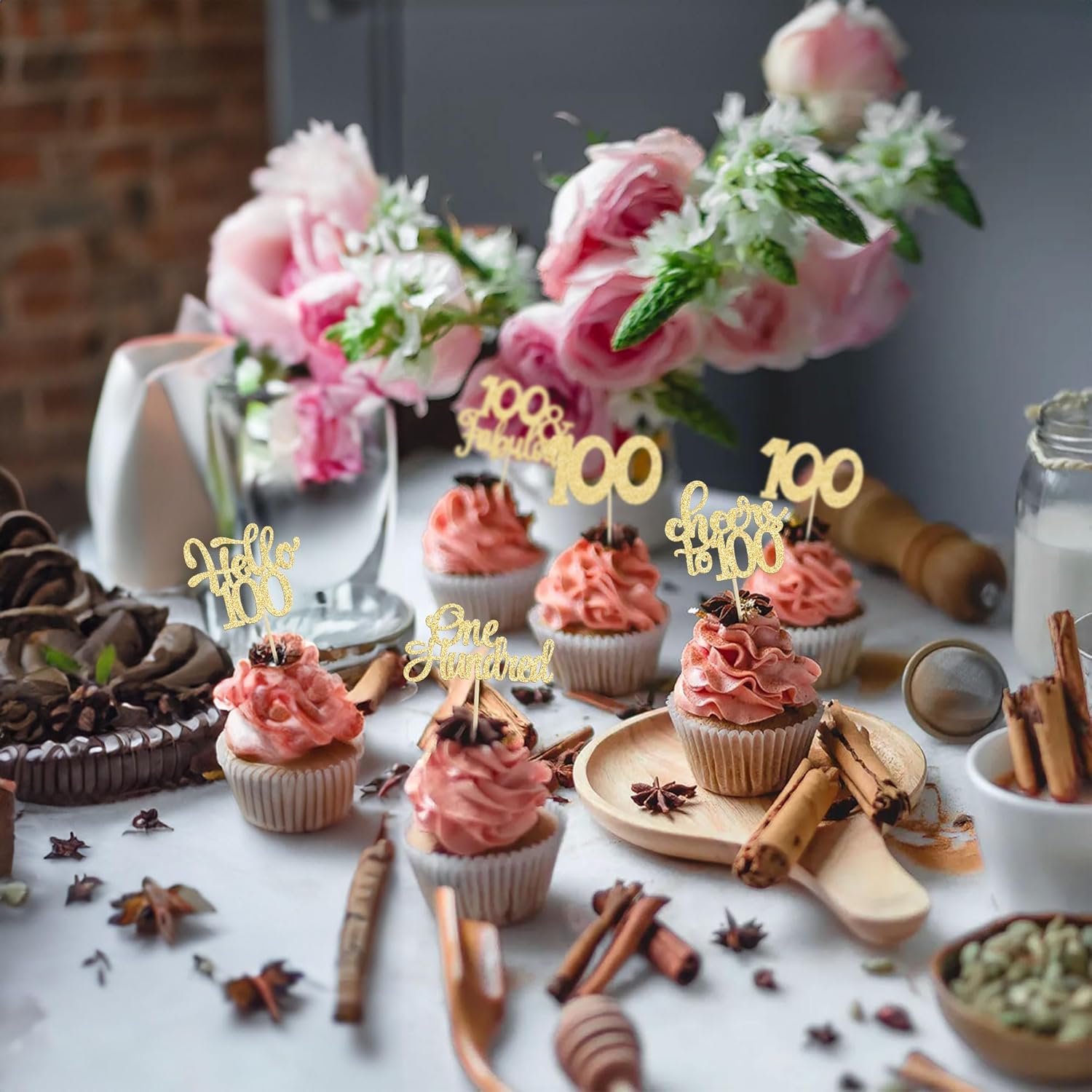 - -These Happy 100th Birthday Cupcake Toppers are so cute and good for happy 100th birthday theme party, cheers to 100 years theme party, 90 fabulous theme party, happy 100th birthday anniversary theme party cake decorations. They can make your cupcake more attractive and bring the fun to your party. You can also apply them for ice cream, fruits, cookies and other desserts.