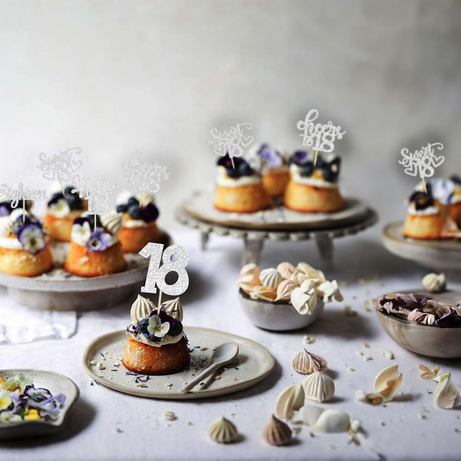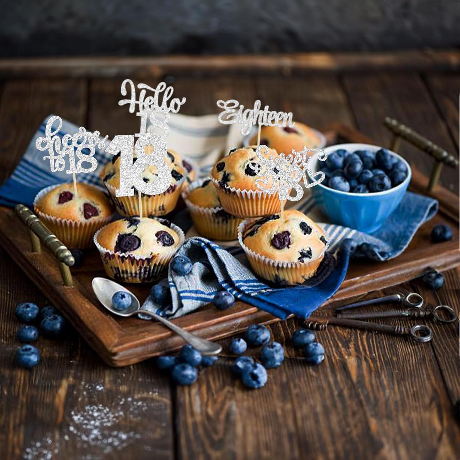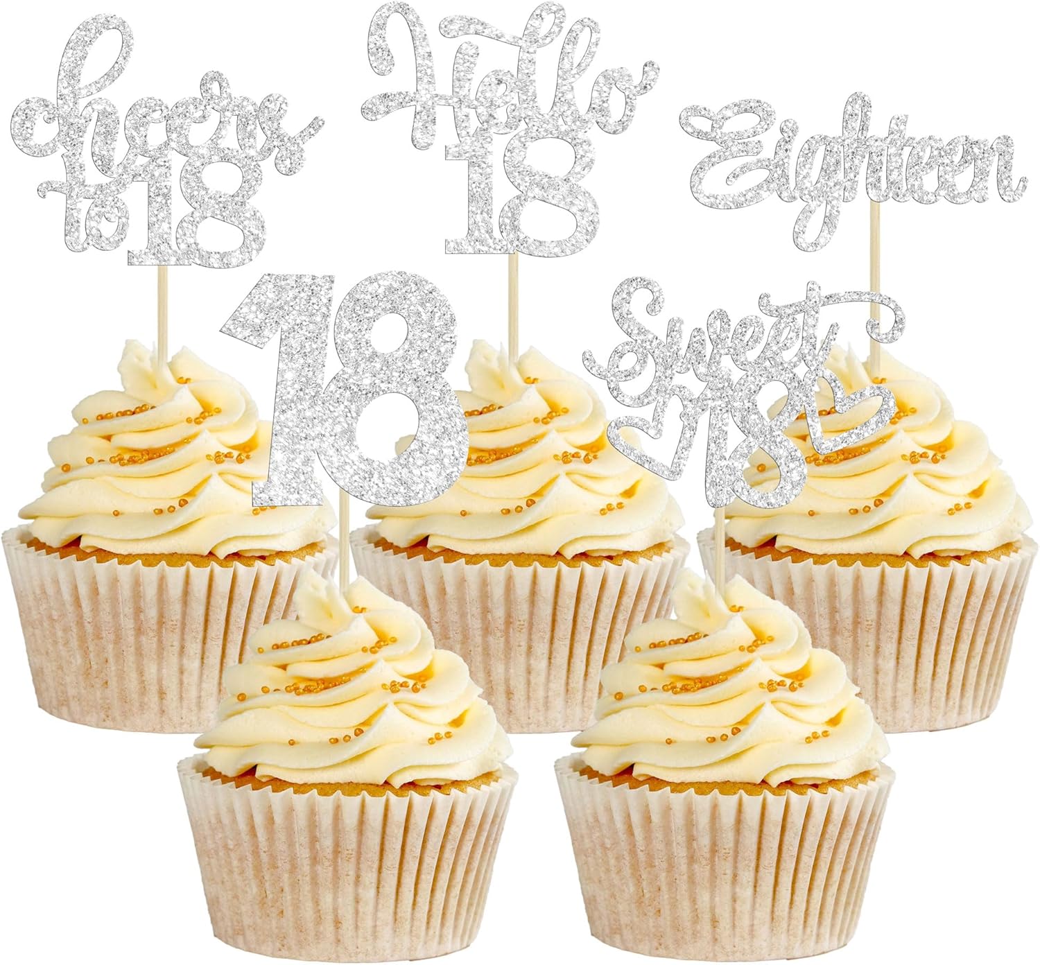30Pcs18th Birthday Cupcake Toppers Eighteen Happy 18th Cupcake Picks Sweet 18 Cheers to 18 Cake Decorations for 18th Birthday Anniversary Party Supplies Silver Glitter