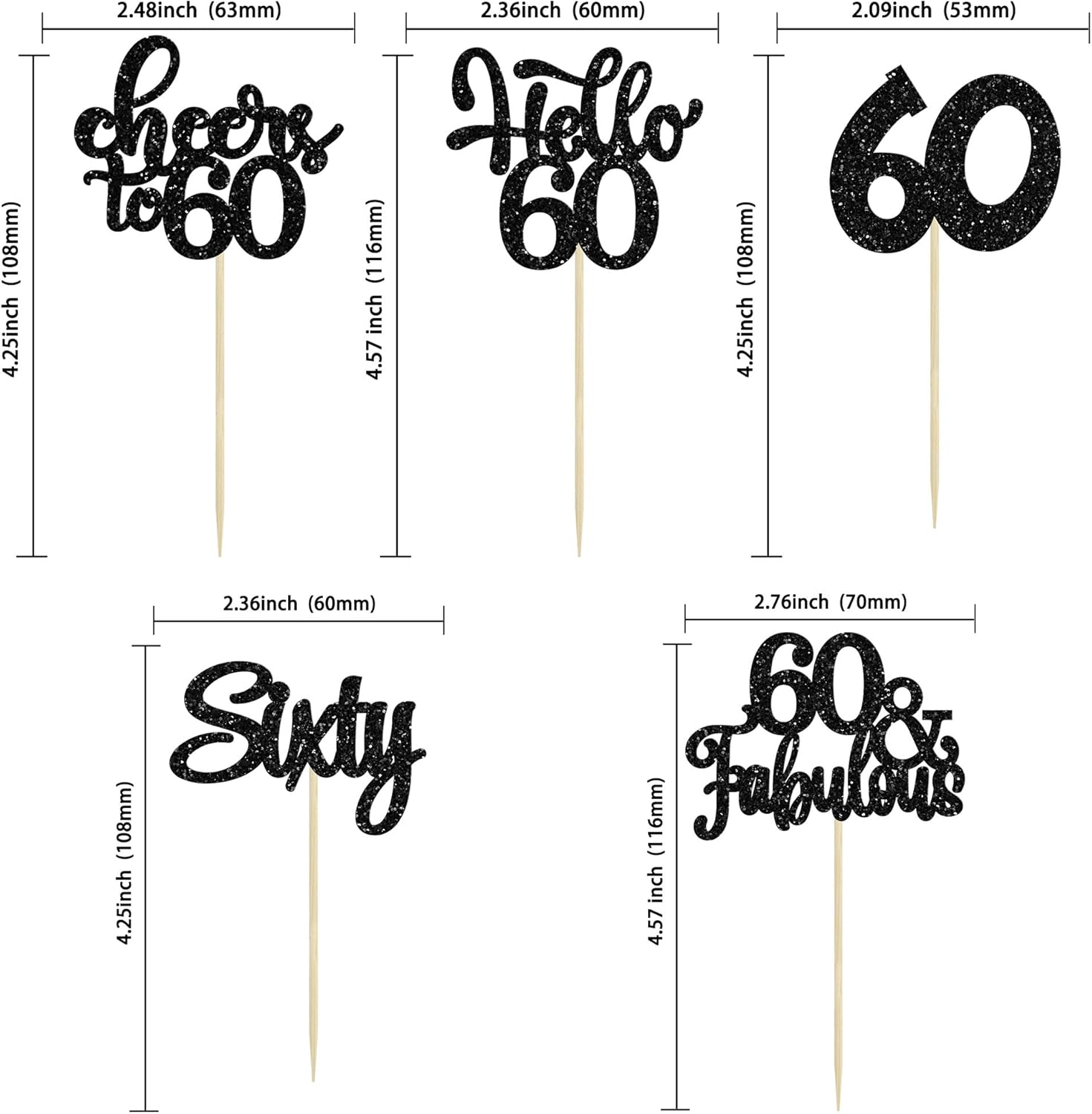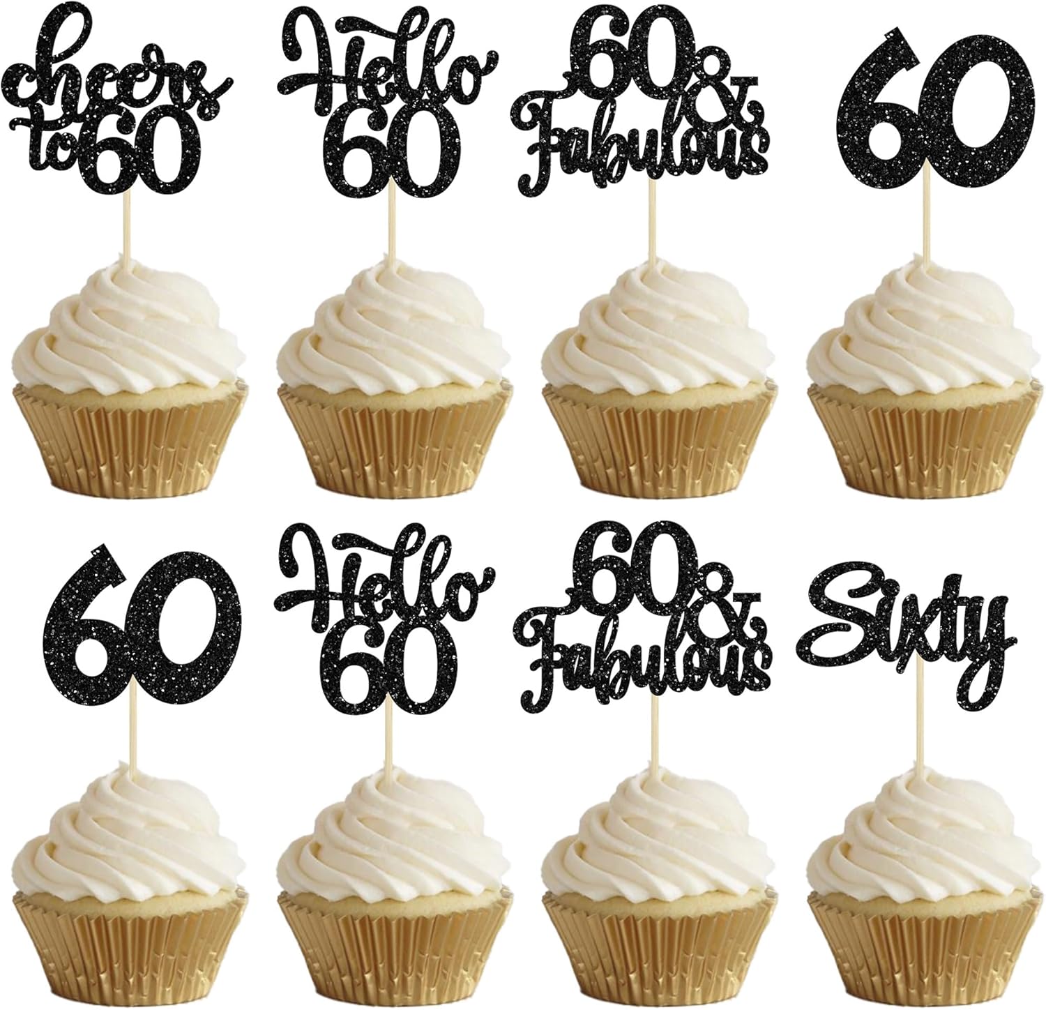 - -These Happy 60th Birthday Cupcake Toppers are so cute and good for happy 60th birthday theme party, cheers to 60 years theme party, 60 fabulous theme party, happy 60th birthday anniversary theme party cake decorations. They can make your cupcake more attractive and bring the fun to your party. You can also apply them for ice cream, fruits, cookies and other desserts.