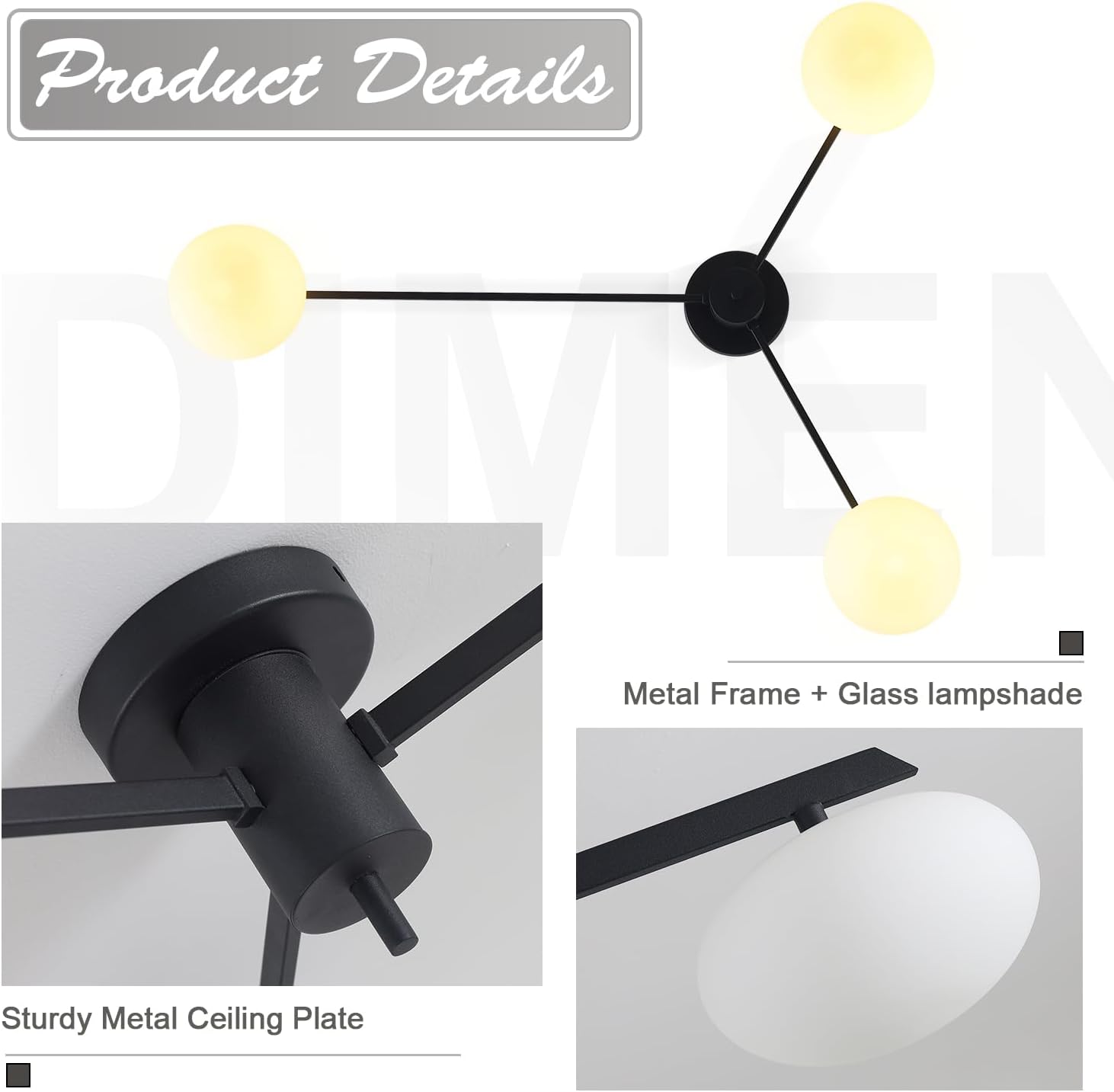 - 【3-Light Black Chandelier】 This glass globe ceiling light fixture,it's made of high-quality metal and high light transmission milk glass globe shade,with smooth lines,minimalist style,brings classy looking to your home, idea for indoor decor. And this Semi flush mount ceiling light fixtures fits any home decor style, creating a comfortable in your house.Perfect for your bedroom,dining room,living room,hallway,kitchen, beauty salon,bar,coffee house,etc