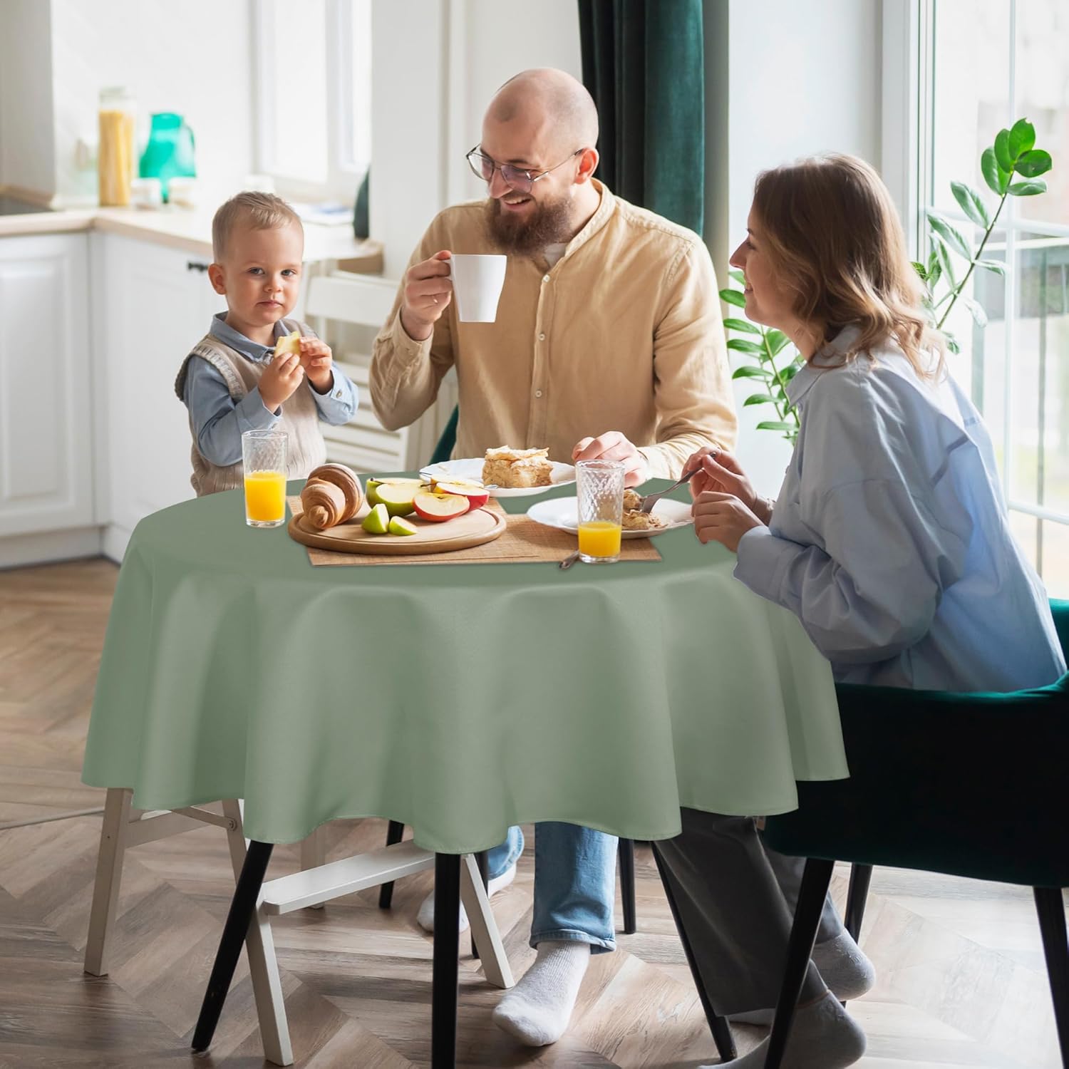 sancua Round Tablecloth - 60 Inch - Water Resistant Spill Proof Washable Polyester Table Cloth Decorative Fabric Table Cover for Dining Tables, Buffet Parties and Camping, Sage Green