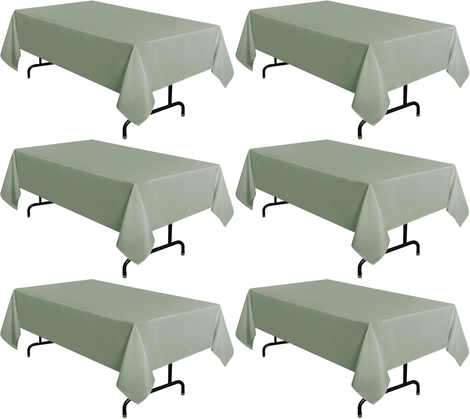 sancua 6 Pack Sage Green Tablecloth 60 x 102 Inch, Rectangle Table Cloth for 6 Feet Tables - Stain and Wrinkle Resistant Washable Polyester Table Cover for Dining Tables, Buffet Parties and Camping