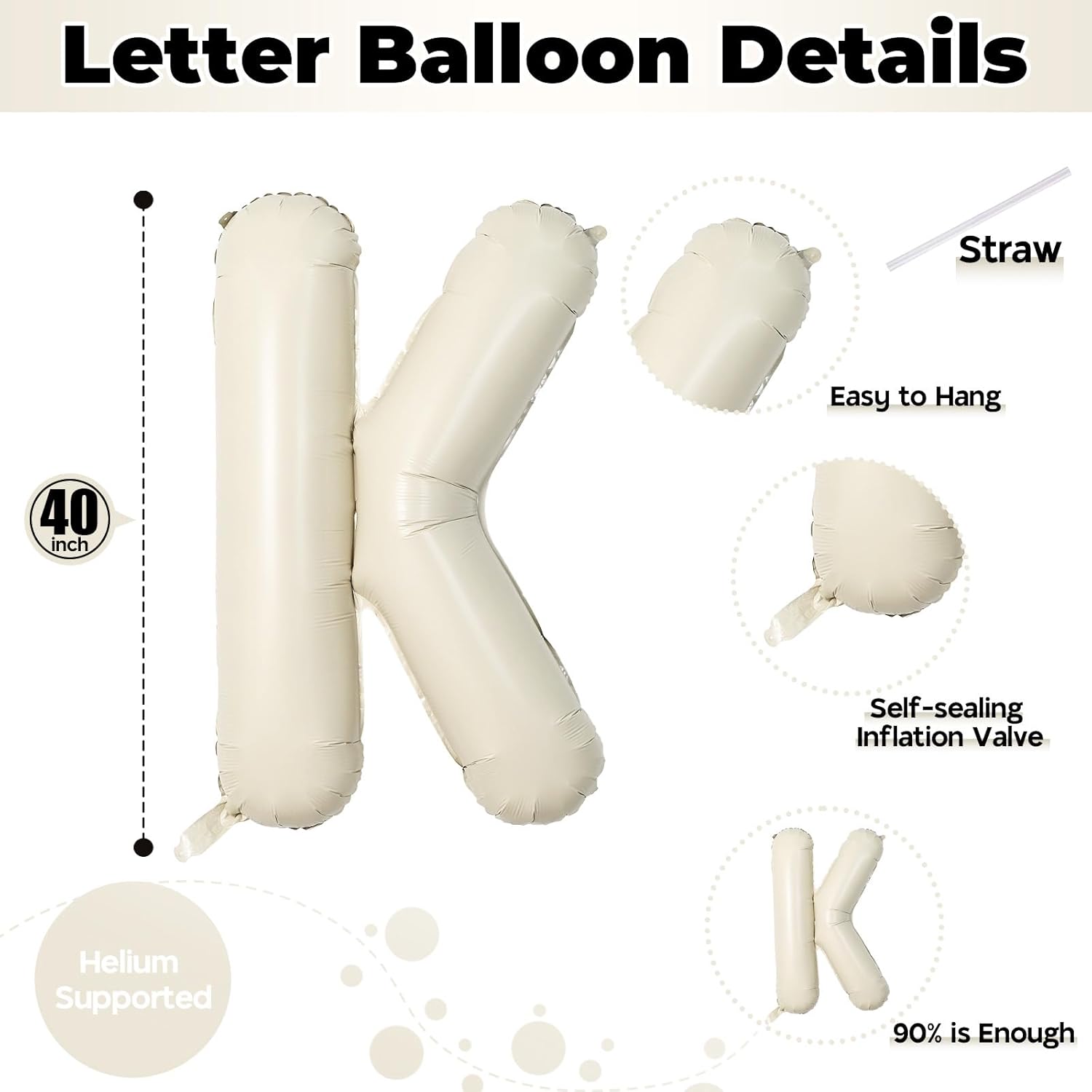 - 🎈 What You Get: Our product package includes 1pcs 40 inch "K" letter foil cream white balloon and 1pcs convenient straw for inflate. You can choose any big letter balloons to combine and customize the word you want to form. Make your party more unique and meaningful.