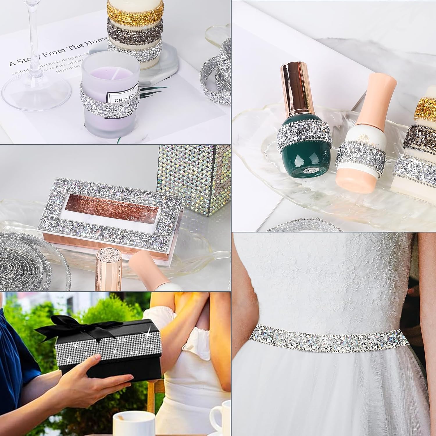 - Wide Applications: The bling rhinestone sticker strip is suitable for many DIY decorations, mirrors, candles, vases, photo frames, costumes, home decor, offices, gardens, cars, personalized phone cases, jewelry boxes, and other places.